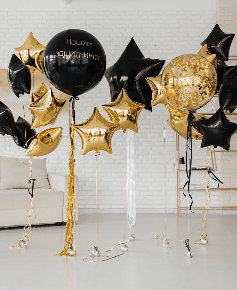Черно-золотые шары на 23 февраля/день защитника отечества №2573