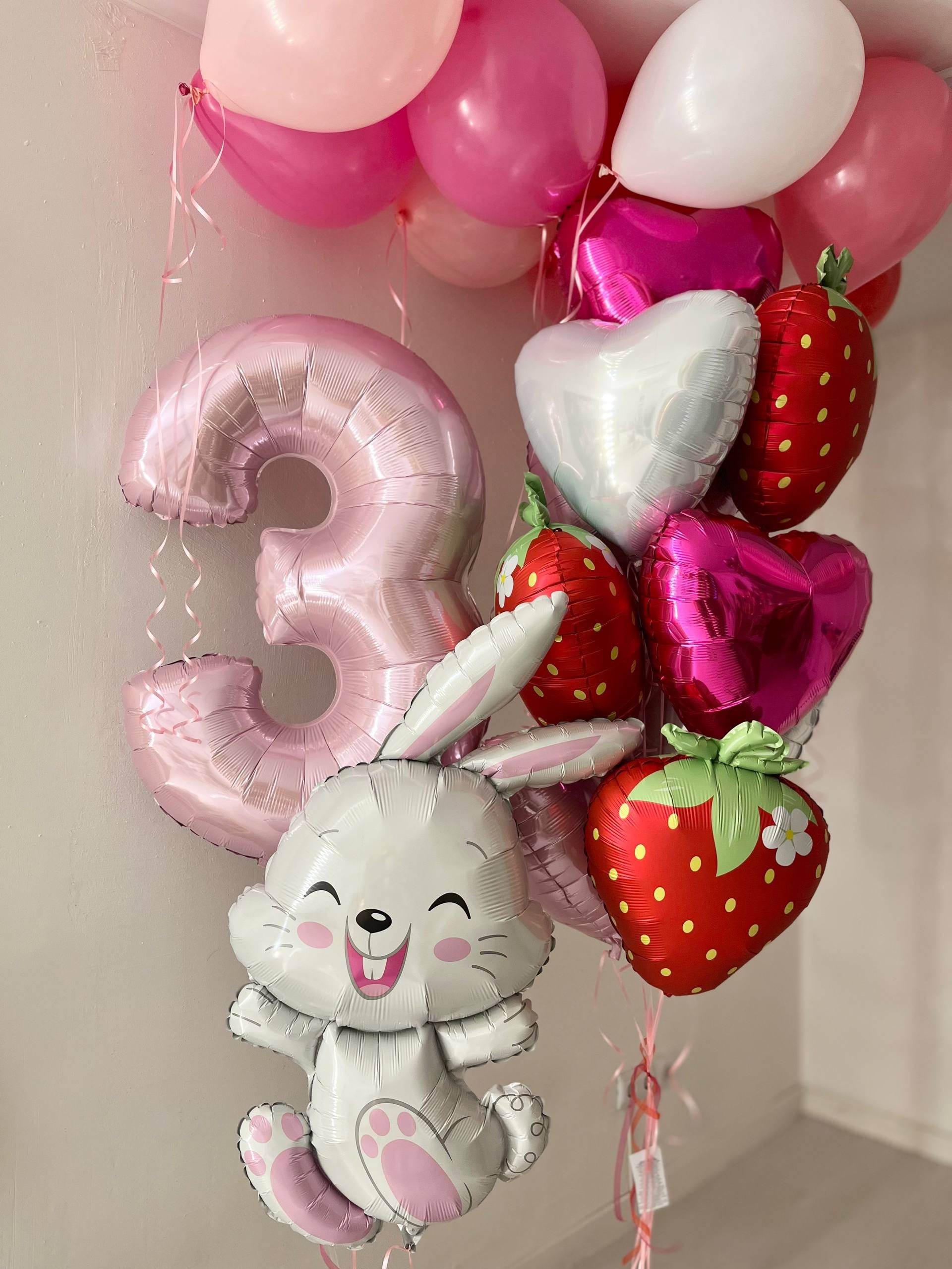 Воздушные гелиевые шарики с доставкой по Хабаровску клубника/зайка/заяц №4397