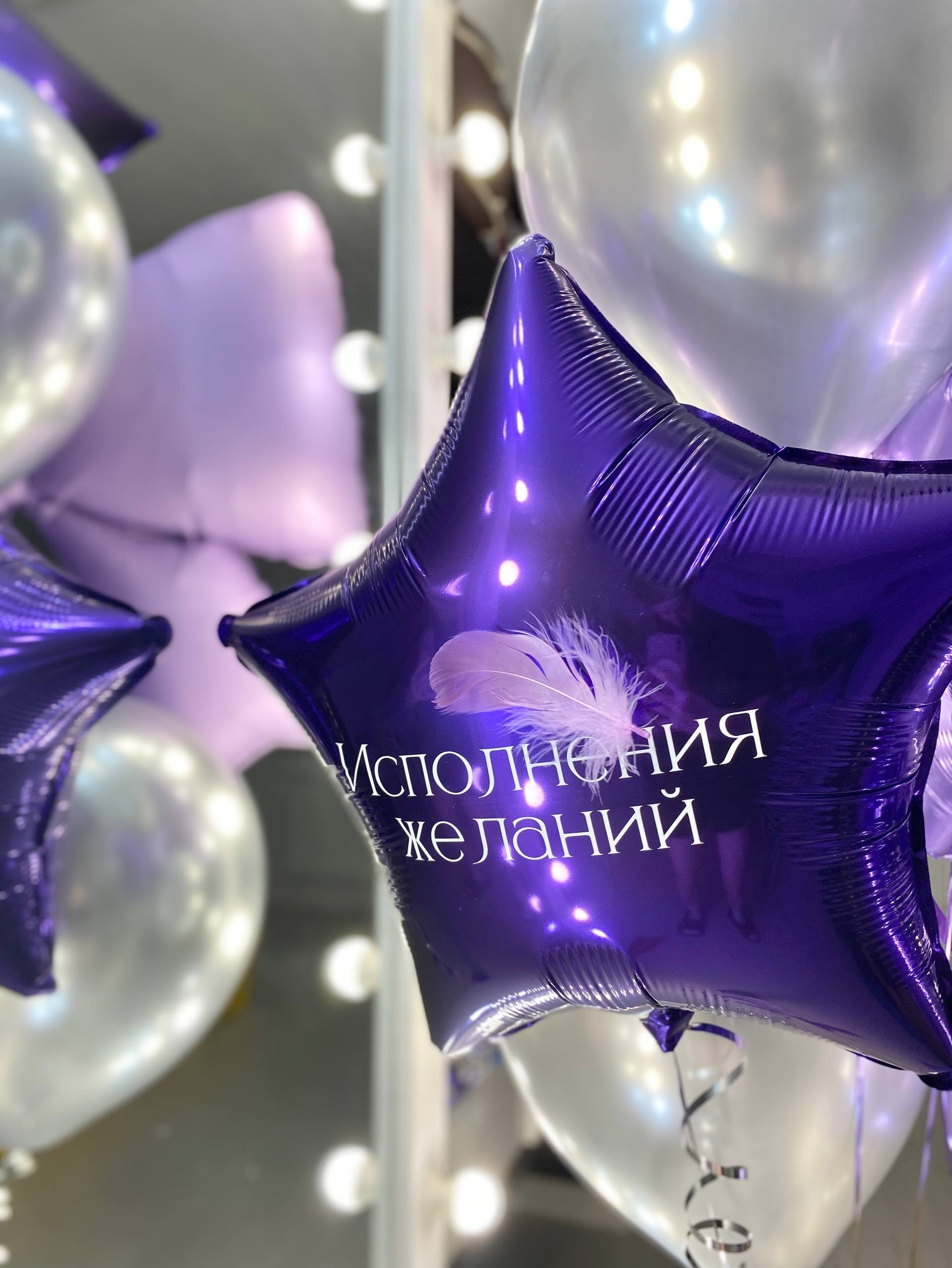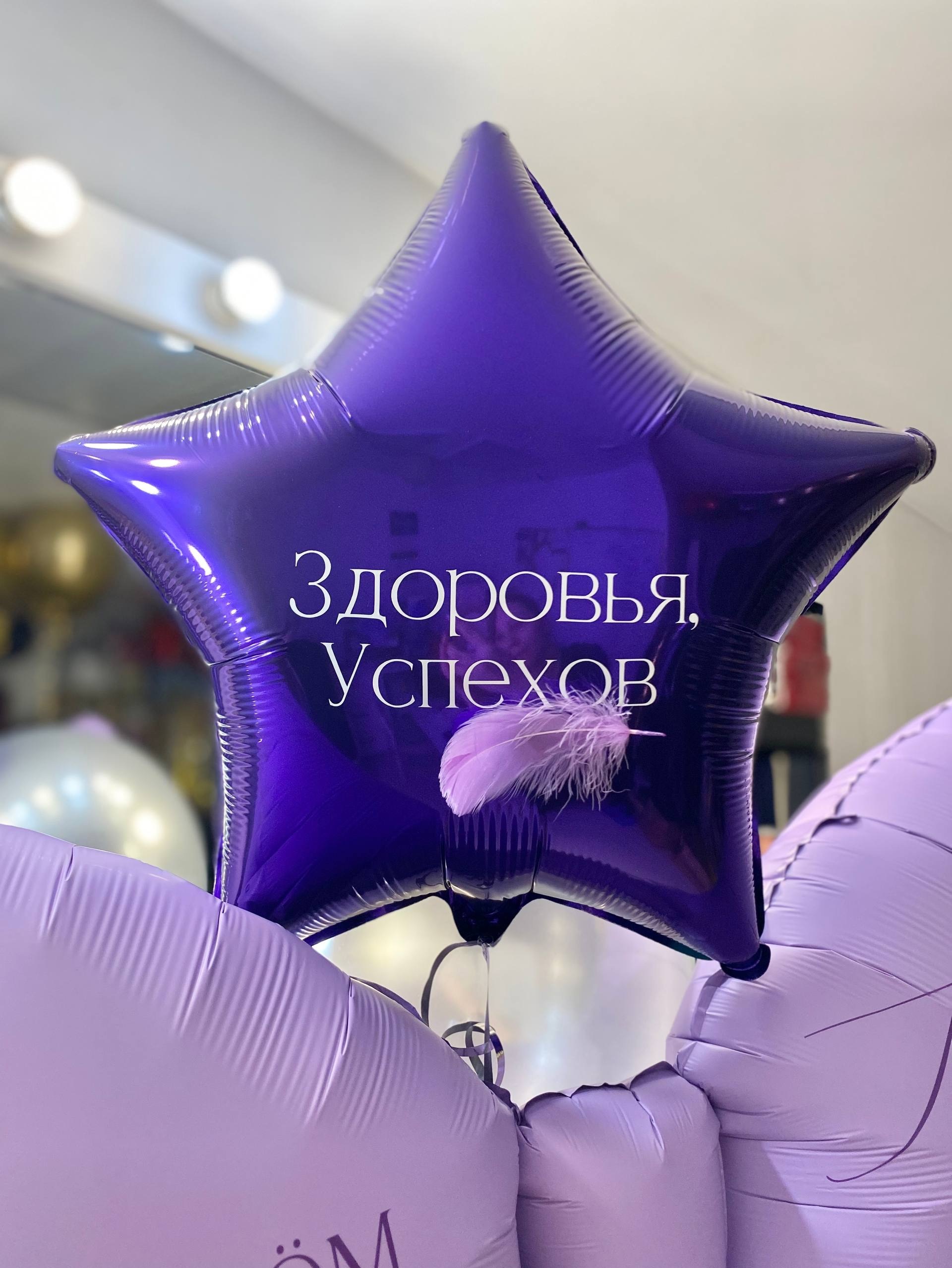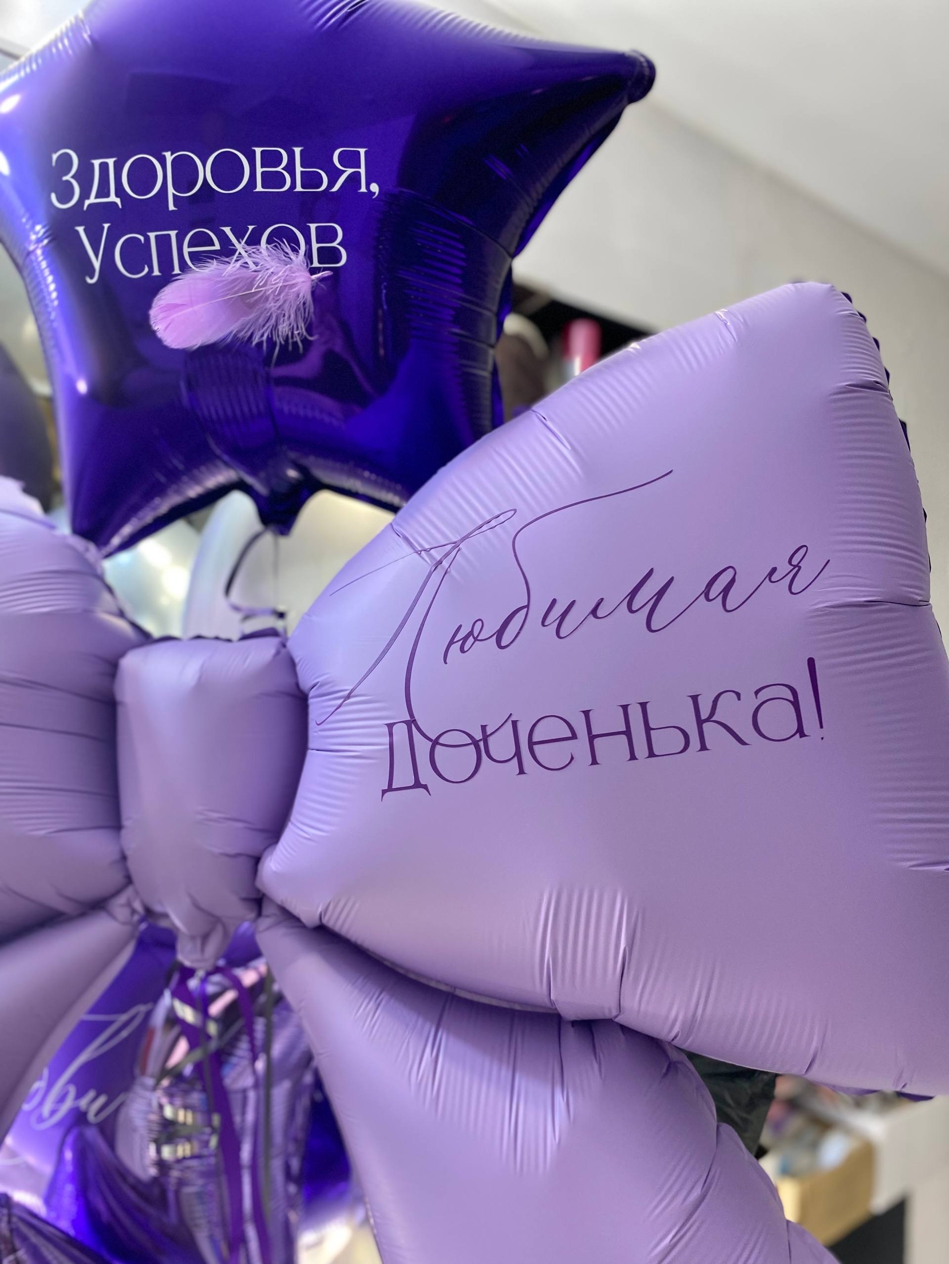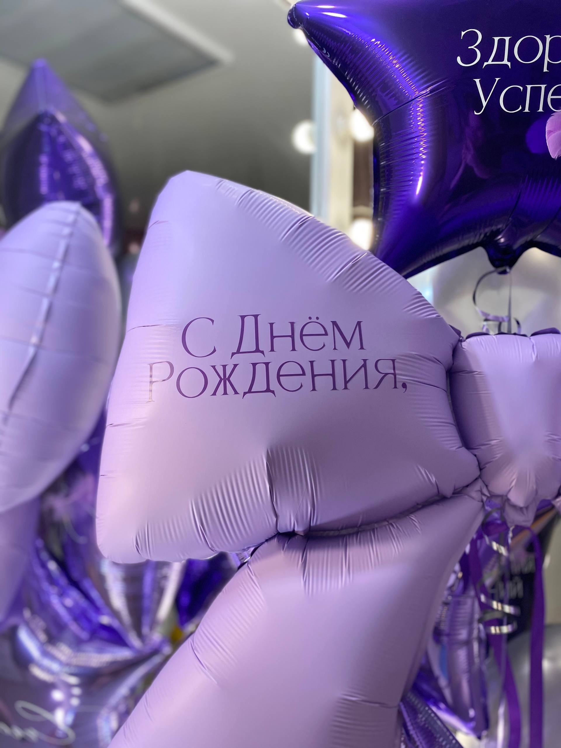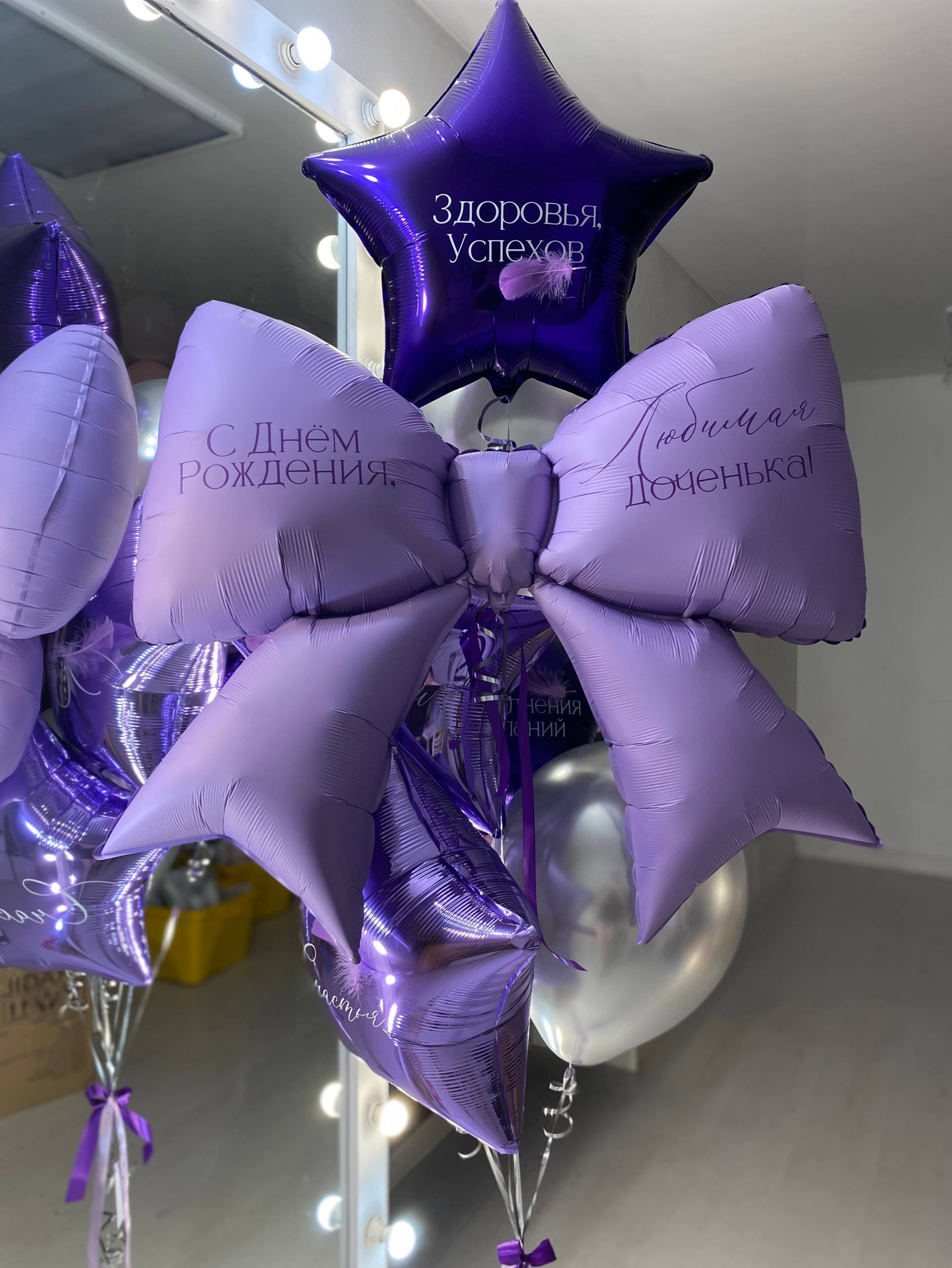 Воздушные гелиевые шары Бант сиреневый/серебро №4449