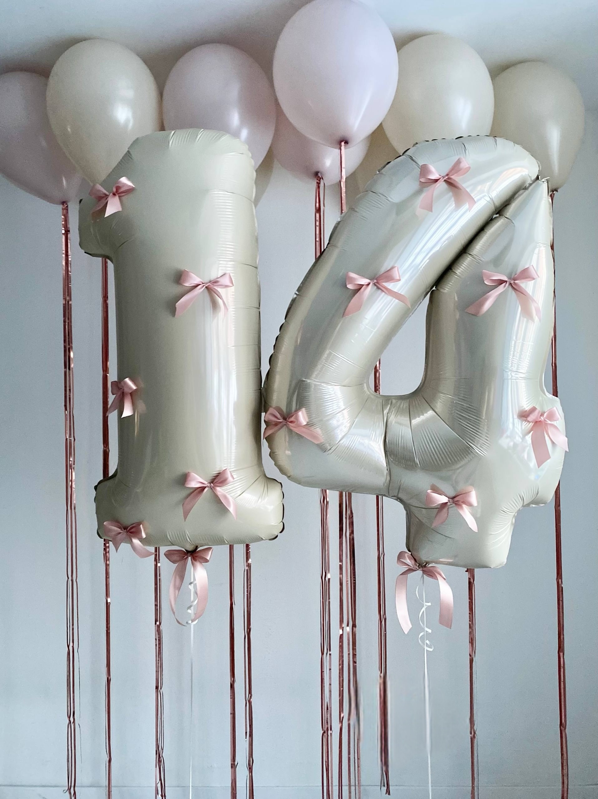 Воздушные гелиевые шары цифры песок/дождик/бантики №4495