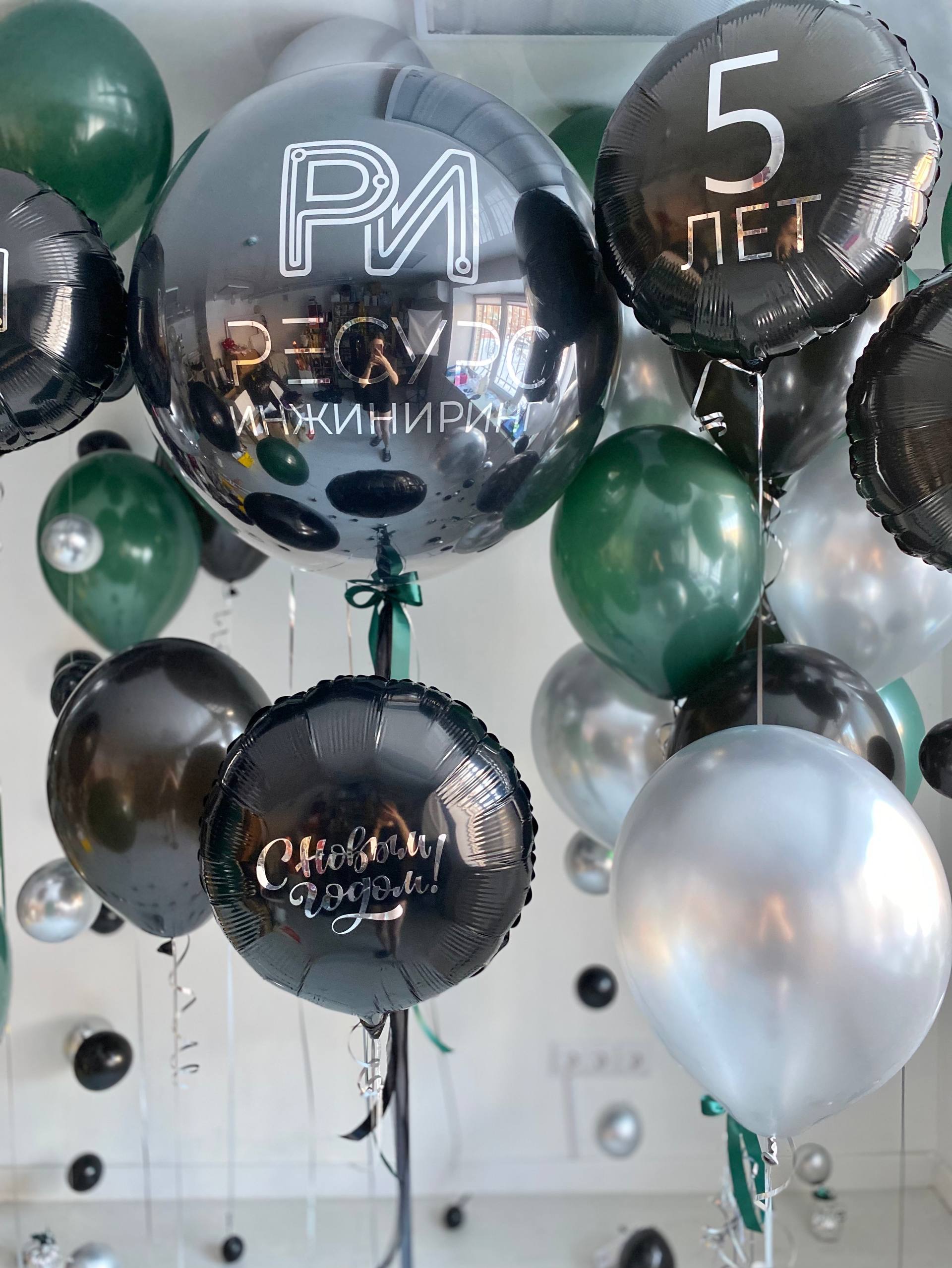 Воздушные гелиевые шарики с доставкой по Хабаровску черный/зеленый/хром пузыри №4496