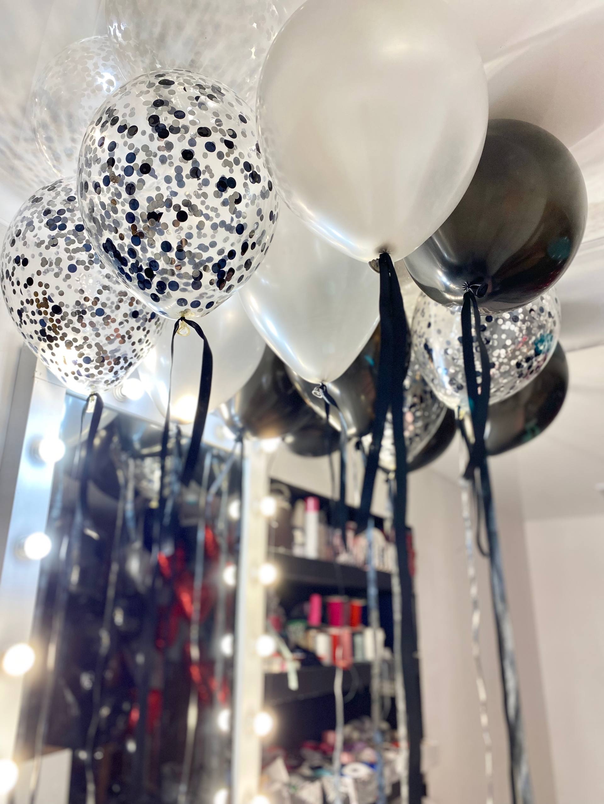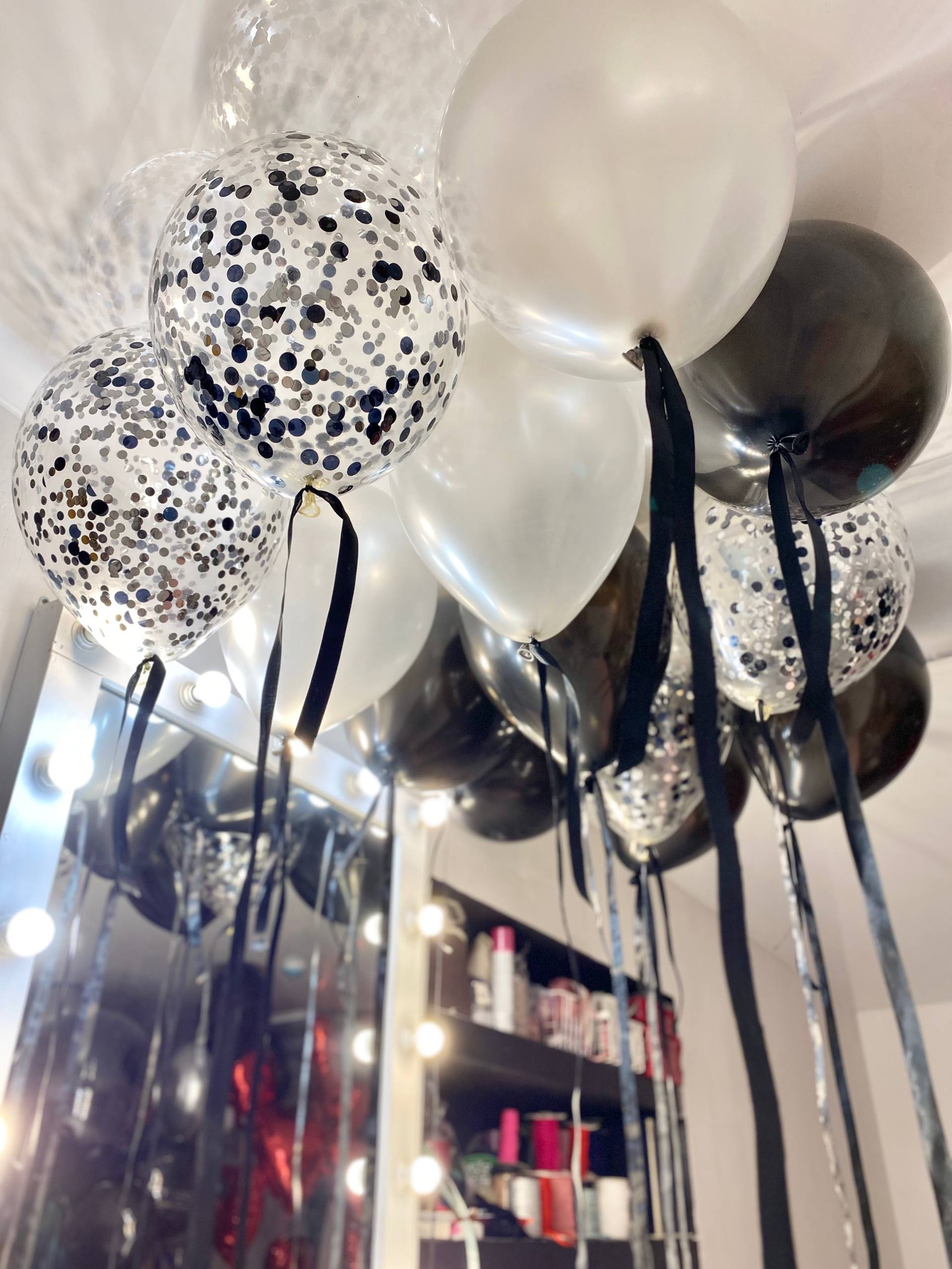 Воздушные гелиевые шарики с доставкой по Хабаровску атласные ленты черный/серебро №4507