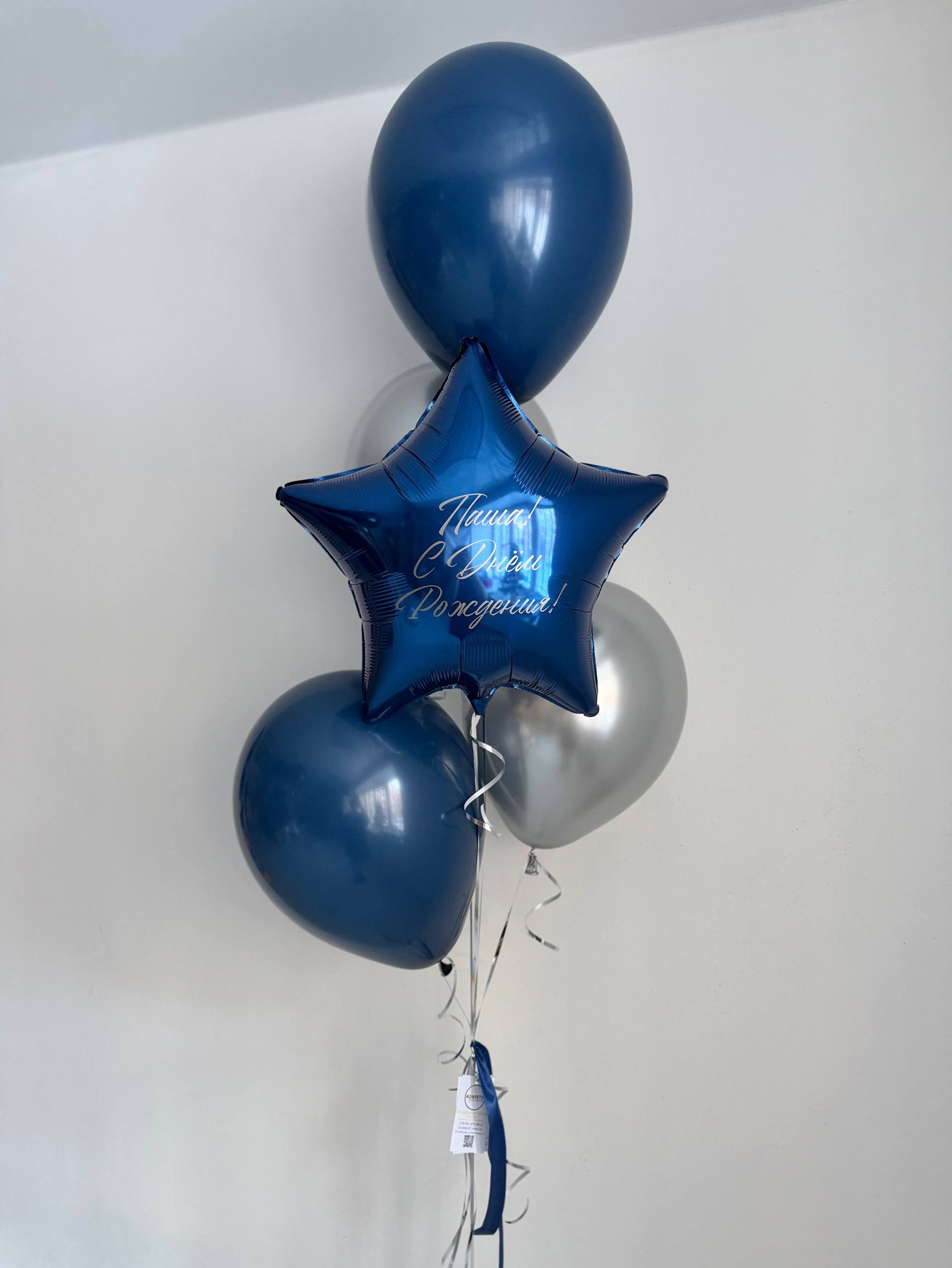 Воздушные гелиевые шарики с доставкой по Хабаровску синий/серебро №4519