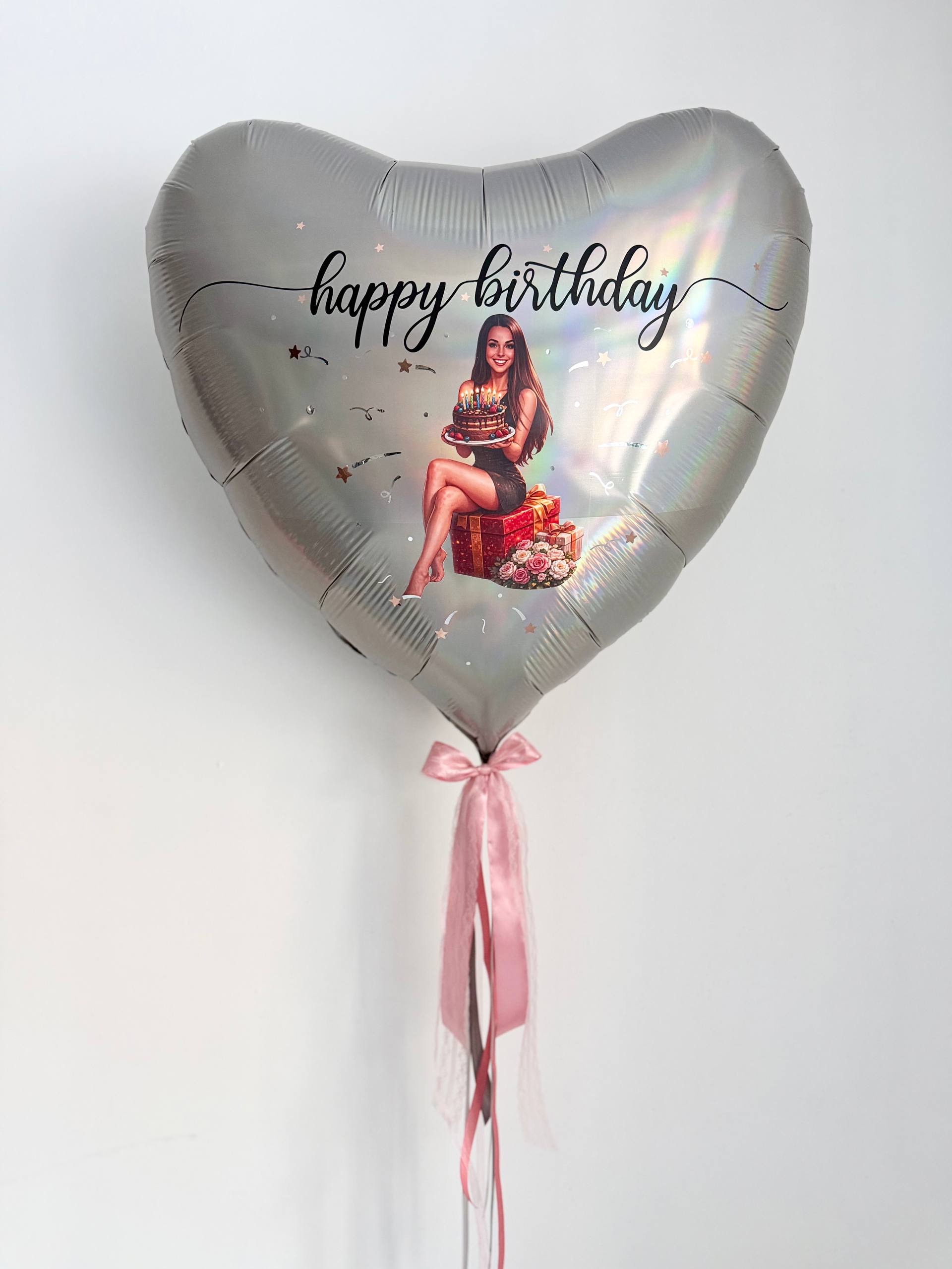 Воздушные гелиевые шарики с доставкой по Хабаровску сердце 36д голография серебро фото №4552