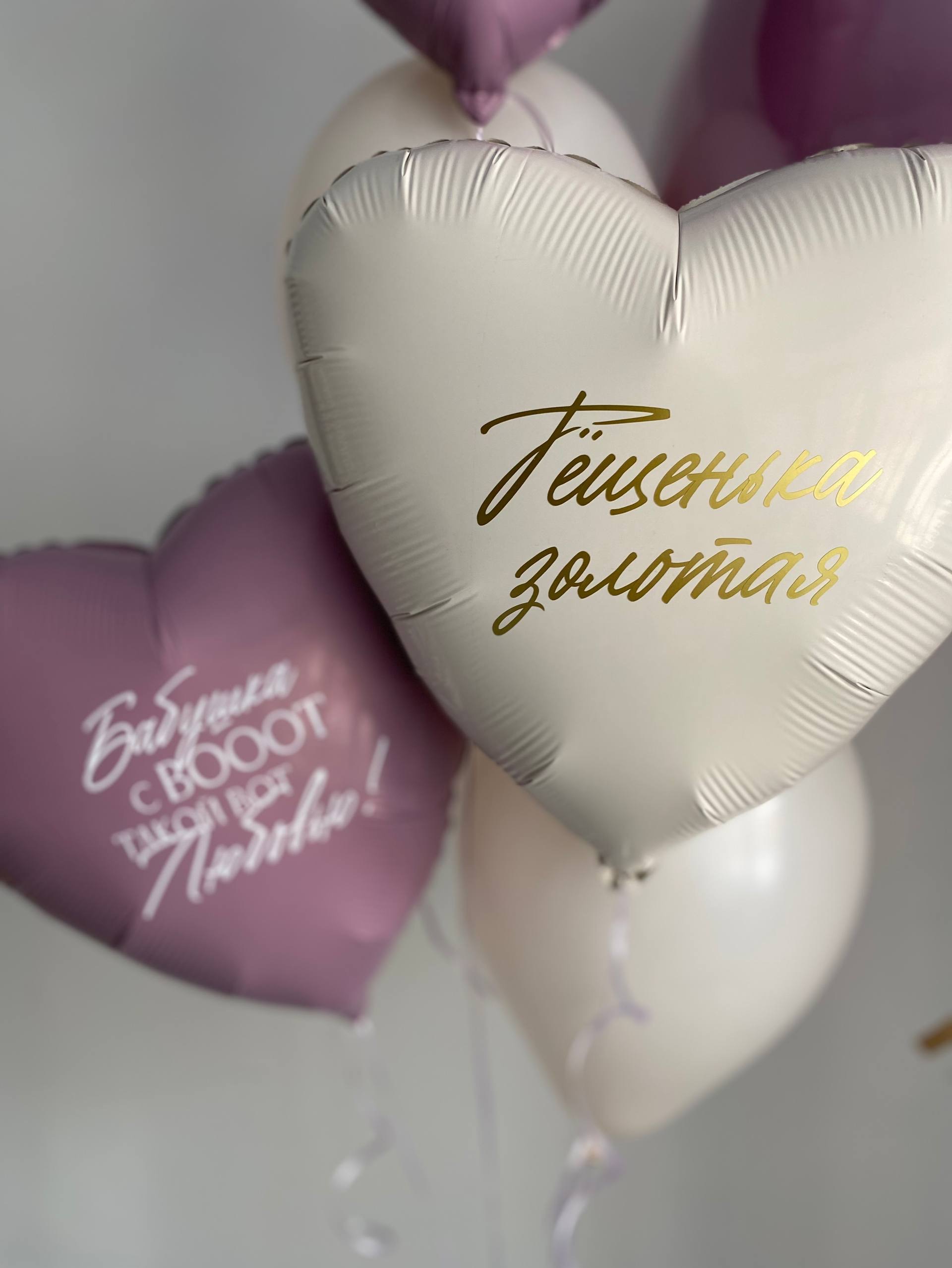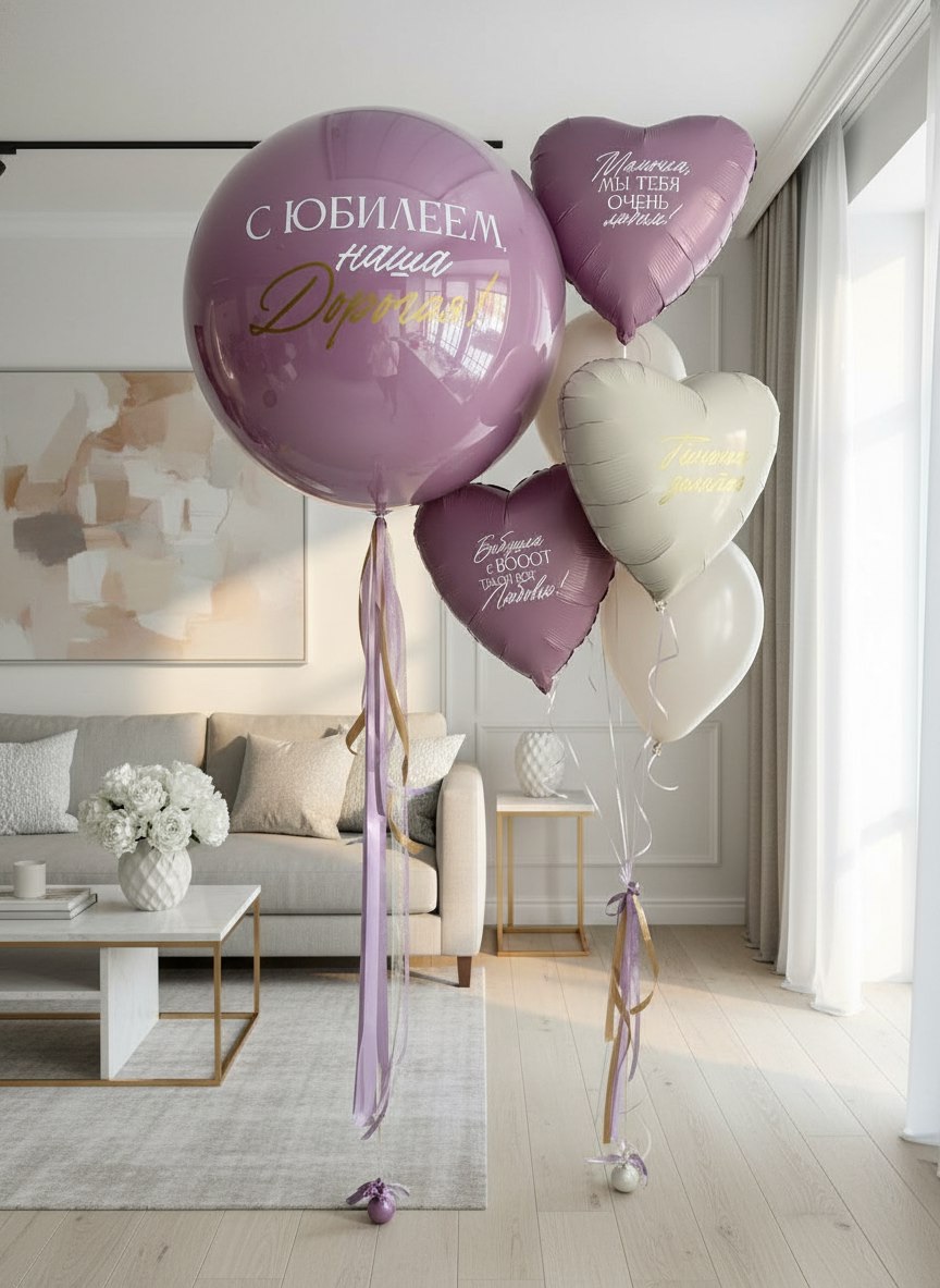 Воздушные гелиевые шары С Юбилеем для бабушки лаванда/крем №4586