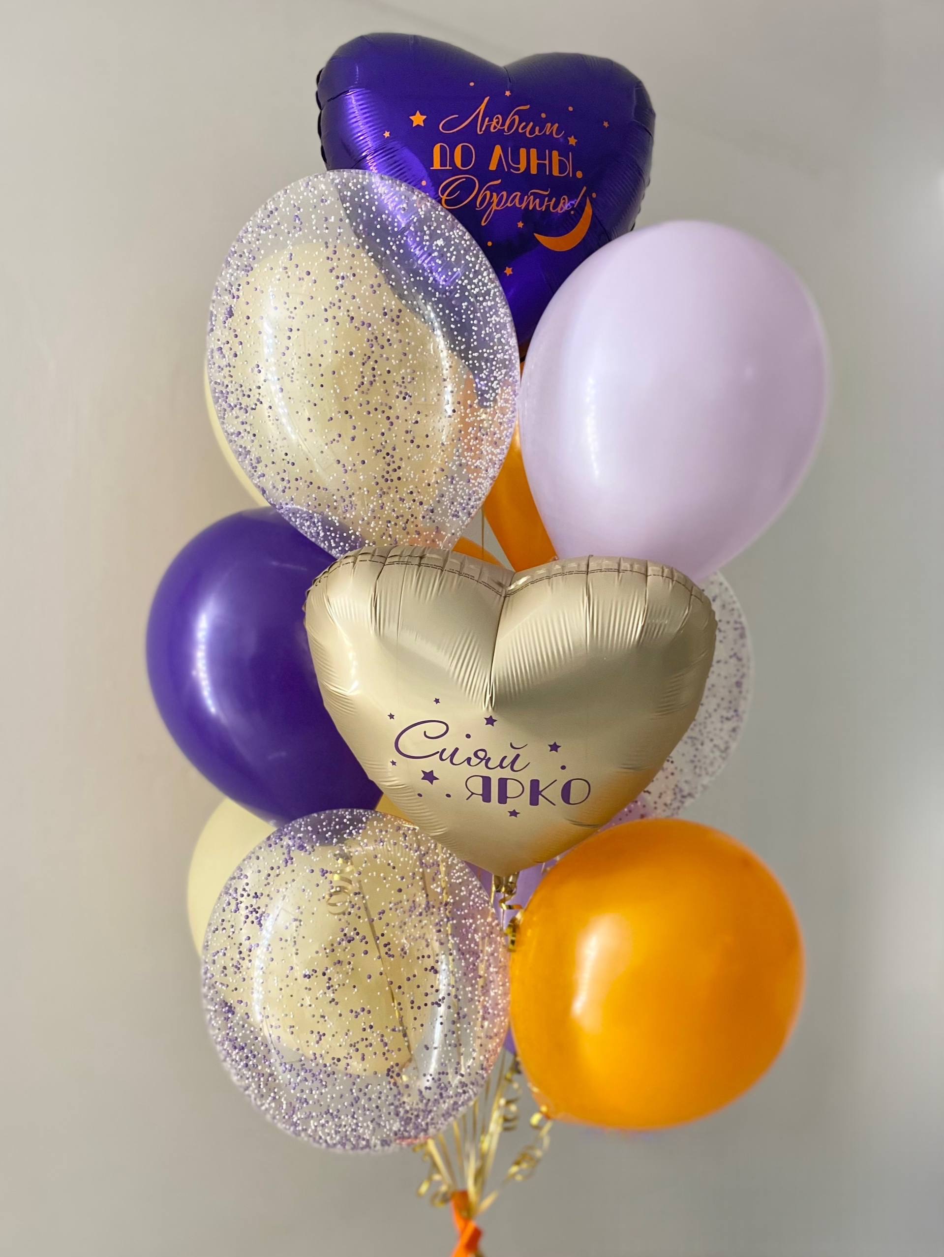 Воздушные гелиевые шарики с доставкой по Хабаровску снег сиреневый/оранжевый №4591