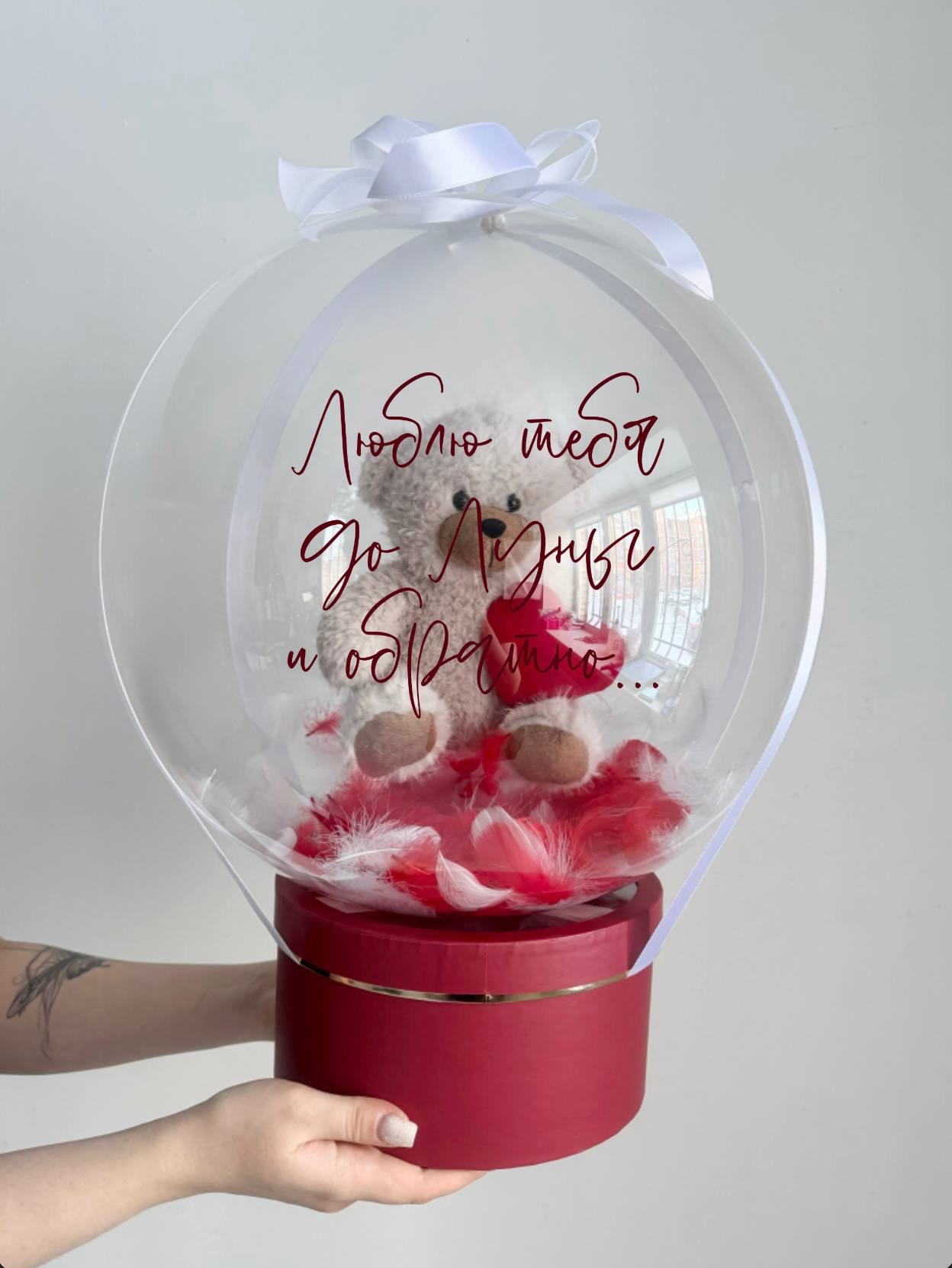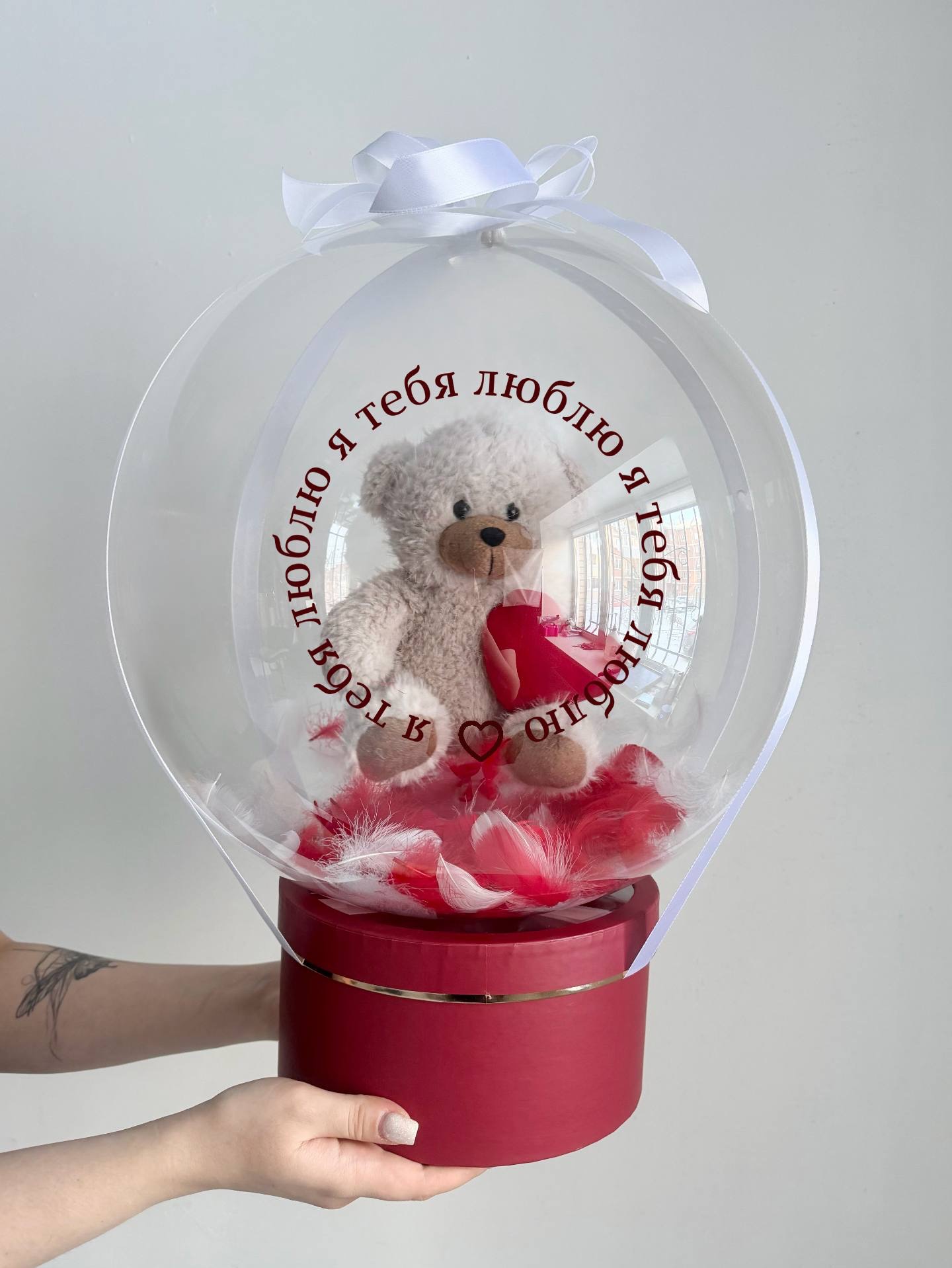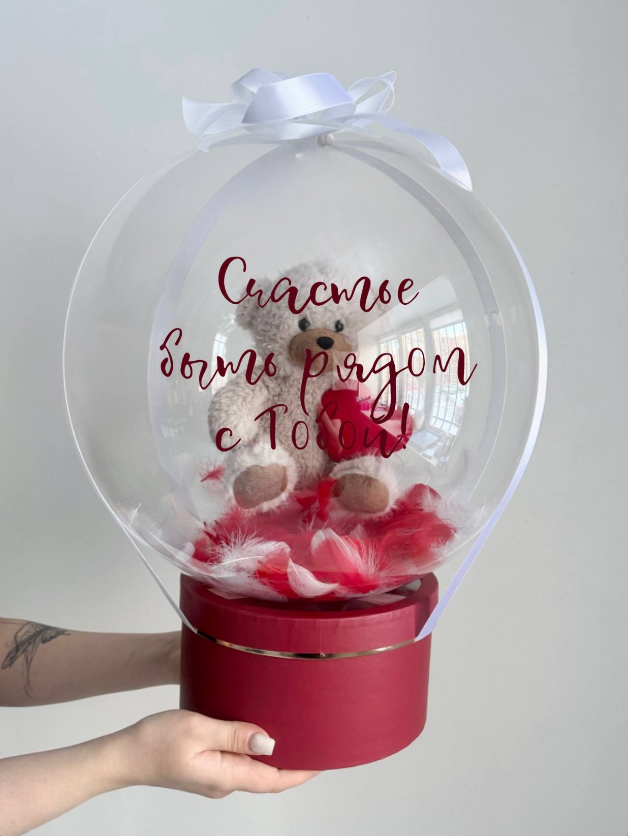 Воздушные гелиевые шары шляпная коробка с мишкой/медведь №4594