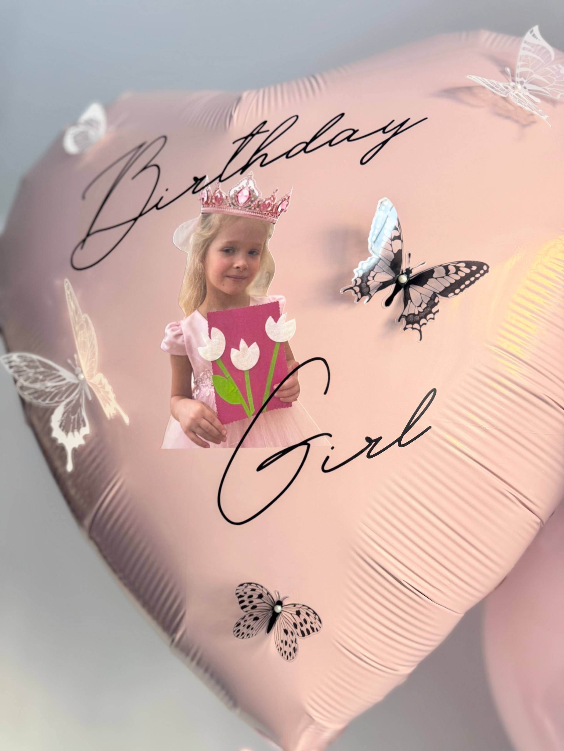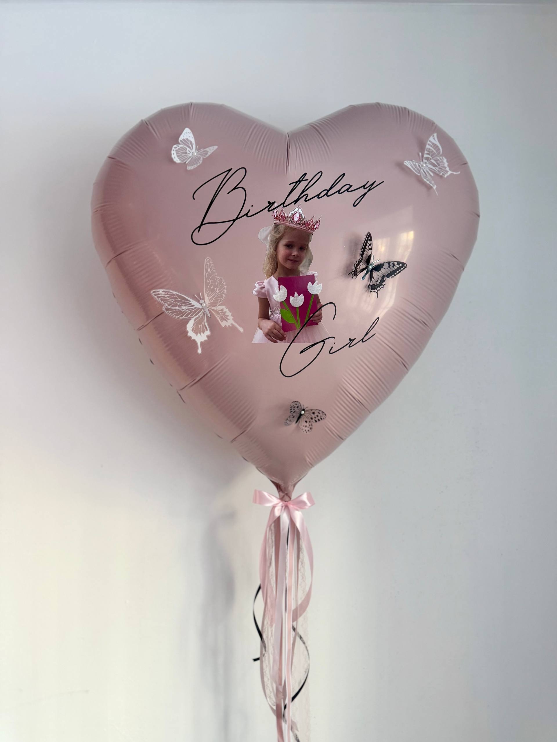 Большое сердце зефир/пыльная роза/бабочки №4707