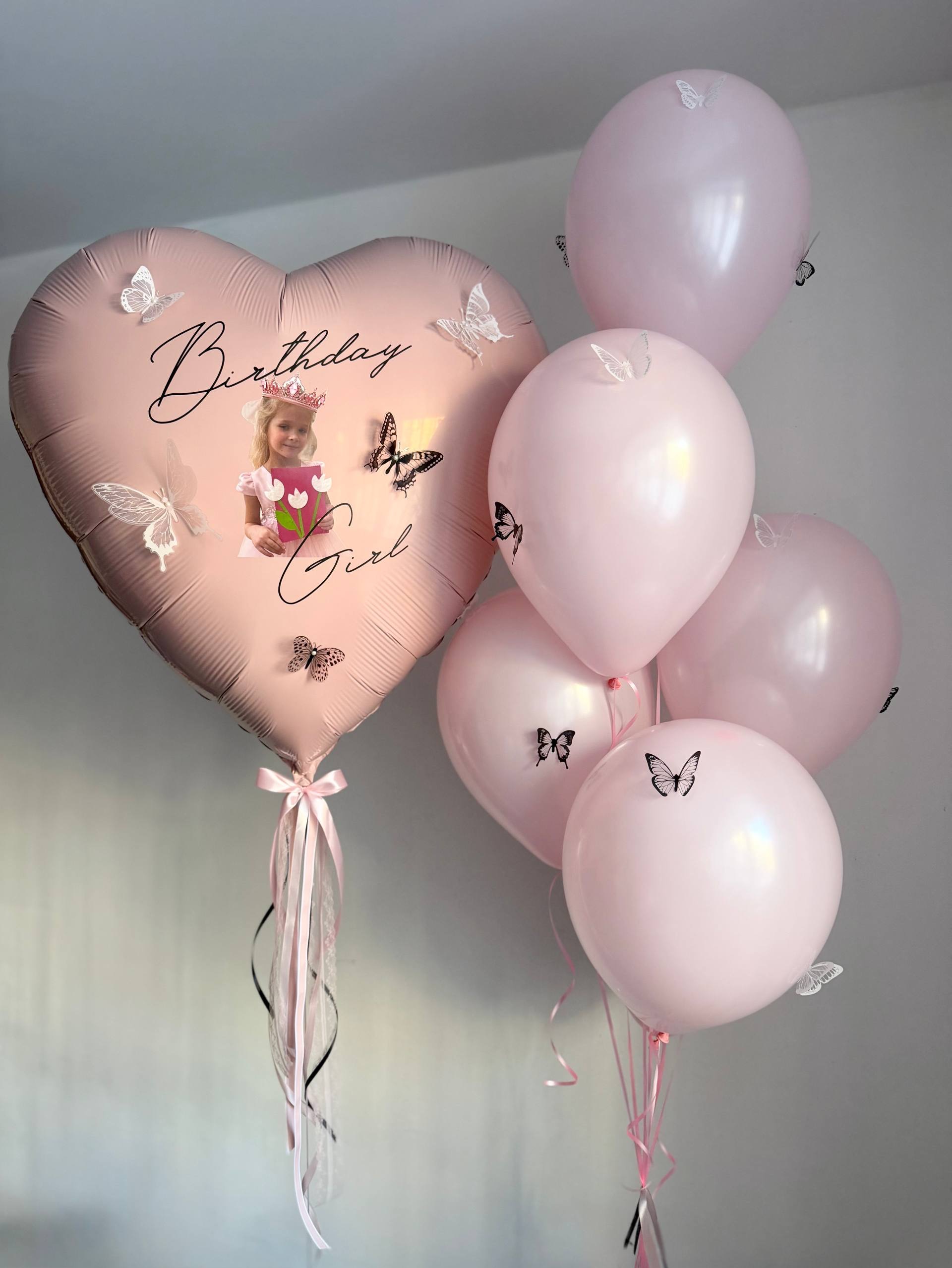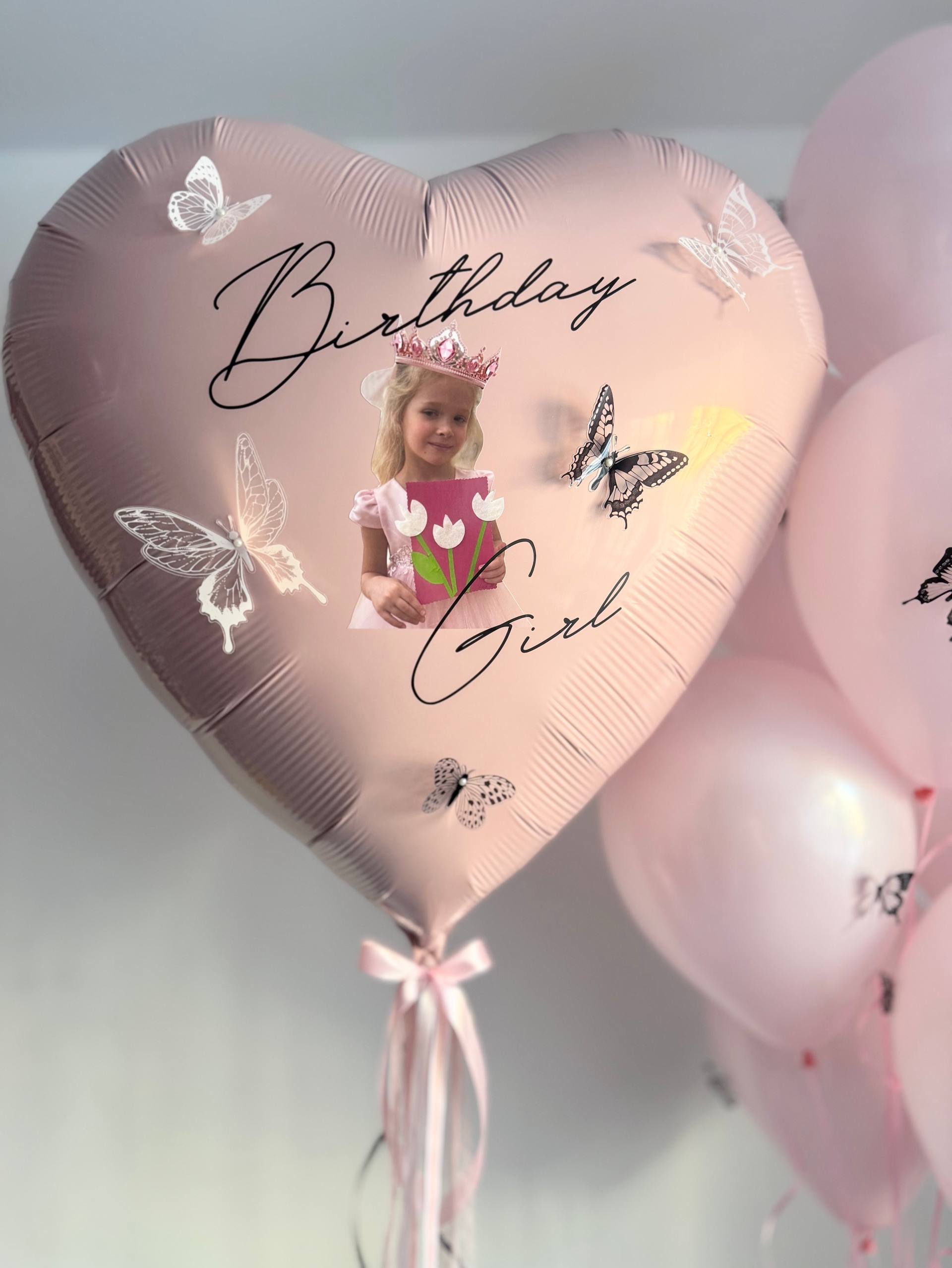 Воздушные гелиевые шары для дочки корона/бабочки/пыльная роза №4708