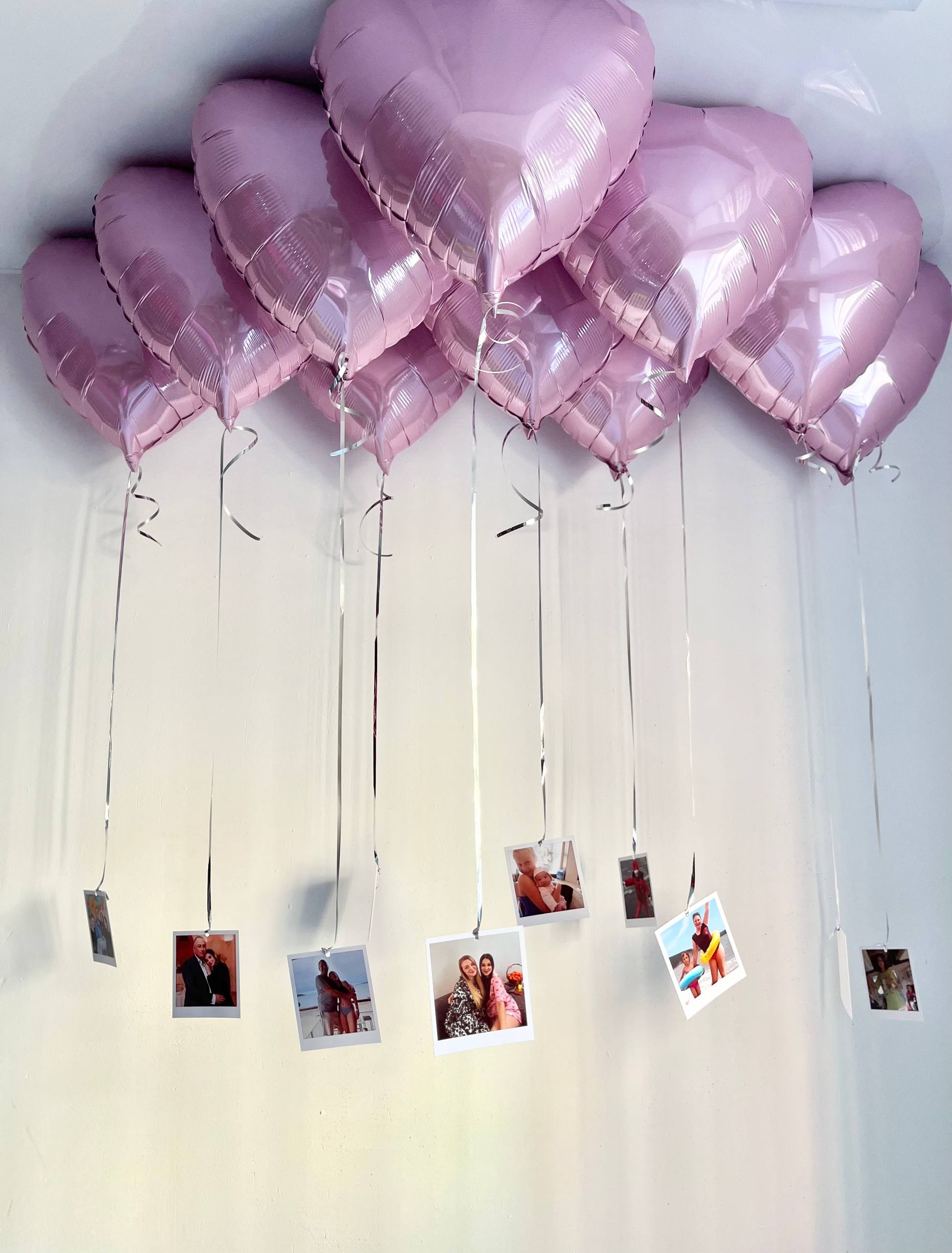 Воздушные гелиевые шарики сердца розовые с фото, 10шт, с доставкой по Хабаровску №4718