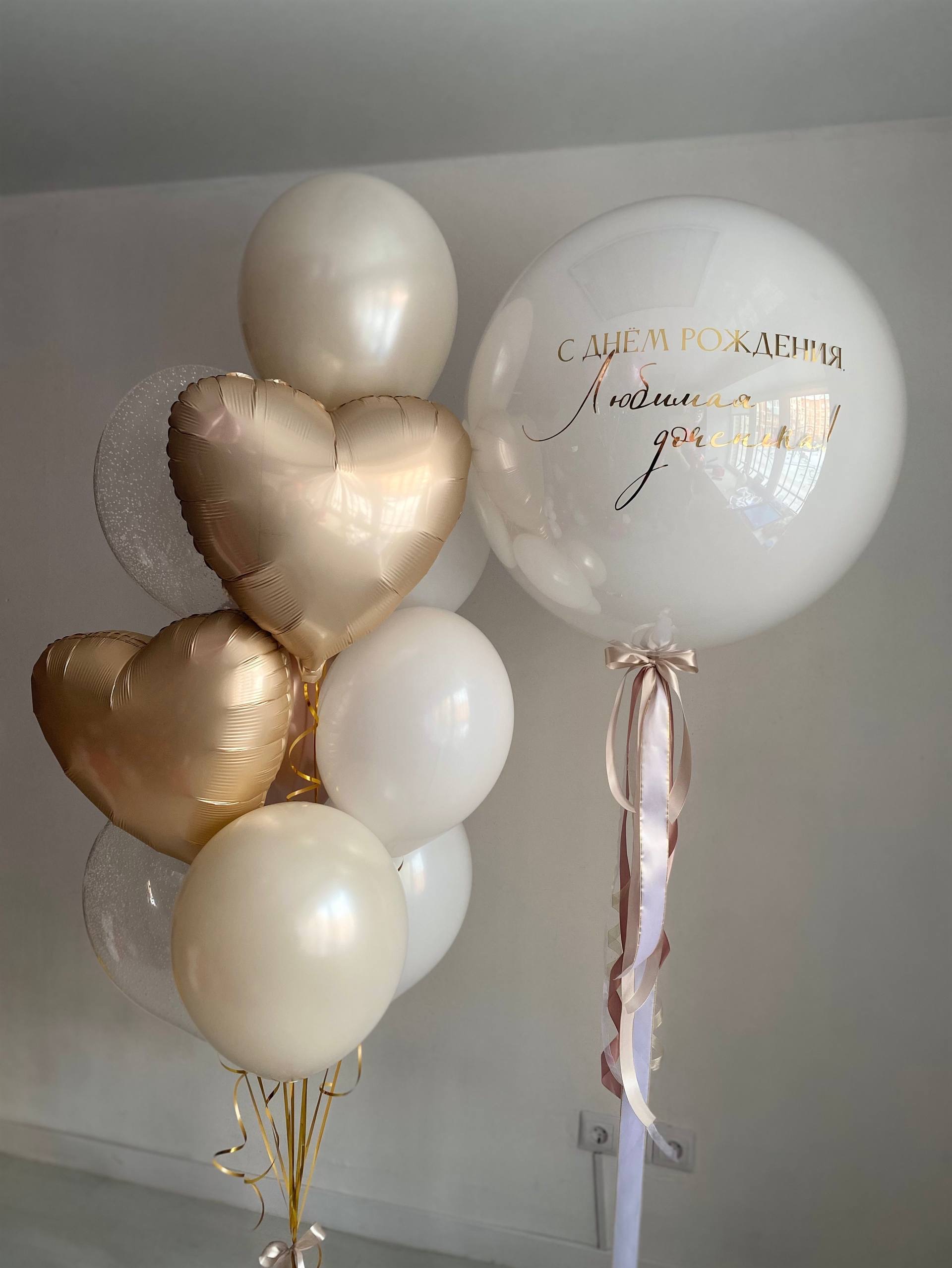 Воздушные гелиевые шары для дочери крем/песок/золото №4722