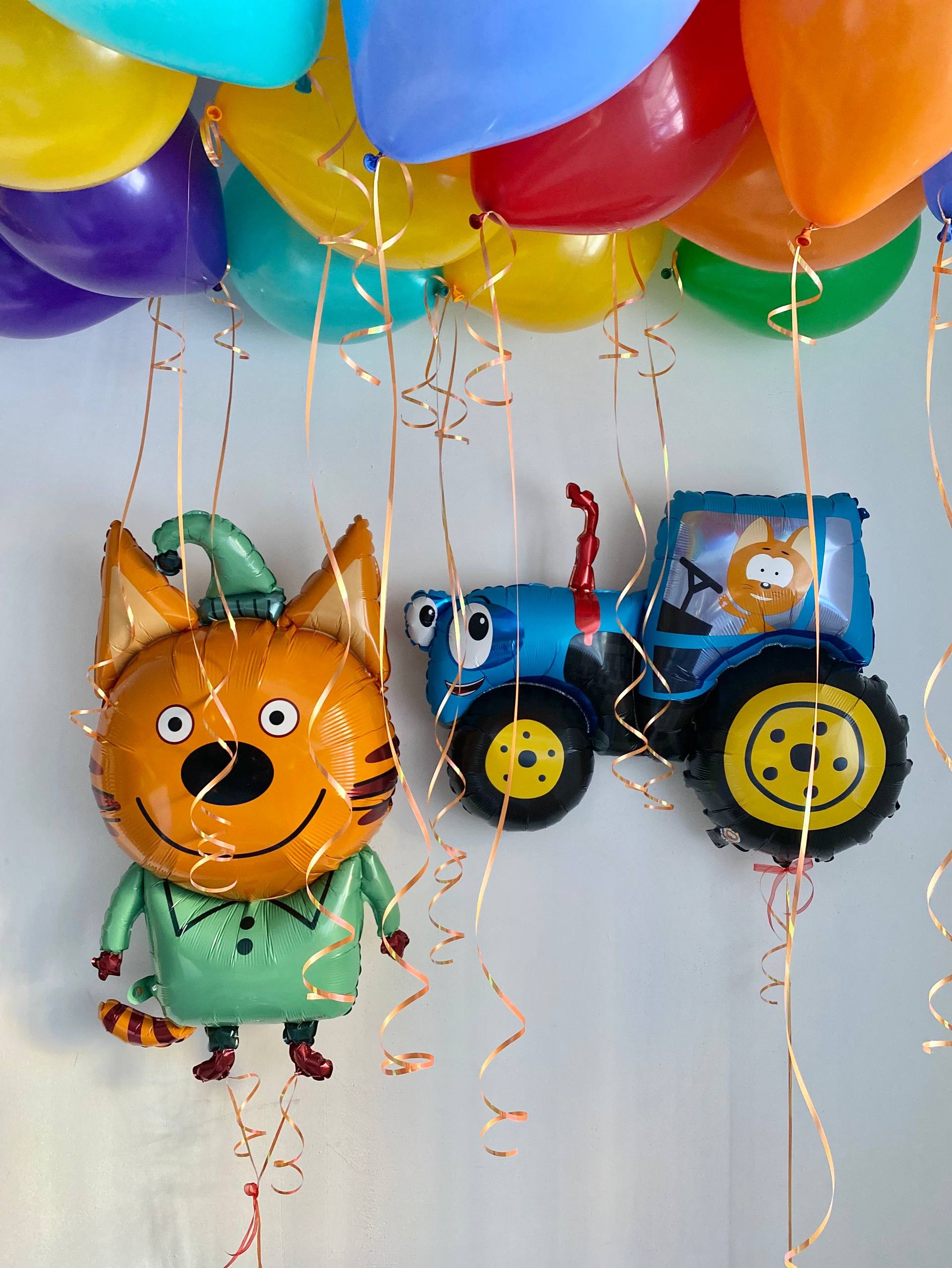 Воздушные гелиевые шарики с доставкой по Хабаровску Котэ/Сини трактор/Компот/Три кота №4728