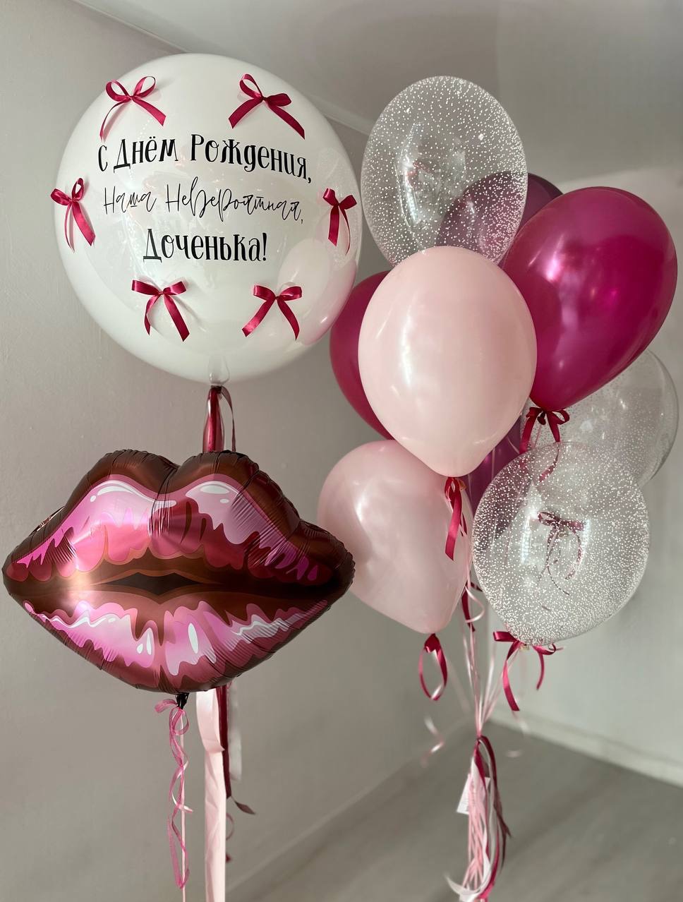 Воздушные гелиевые шары на день рождение губы/снег/бантики №4740