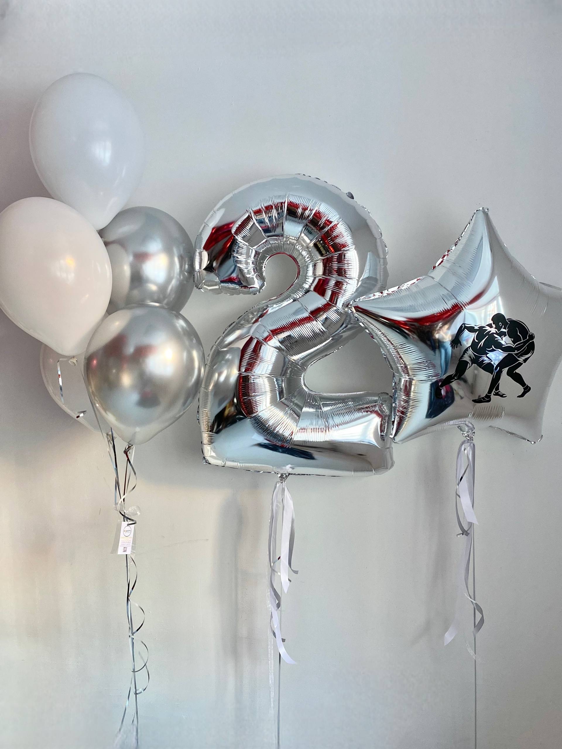 Воздушные гелиевые шарики с доставкой по Хабаровску серебро/белый борец №4748