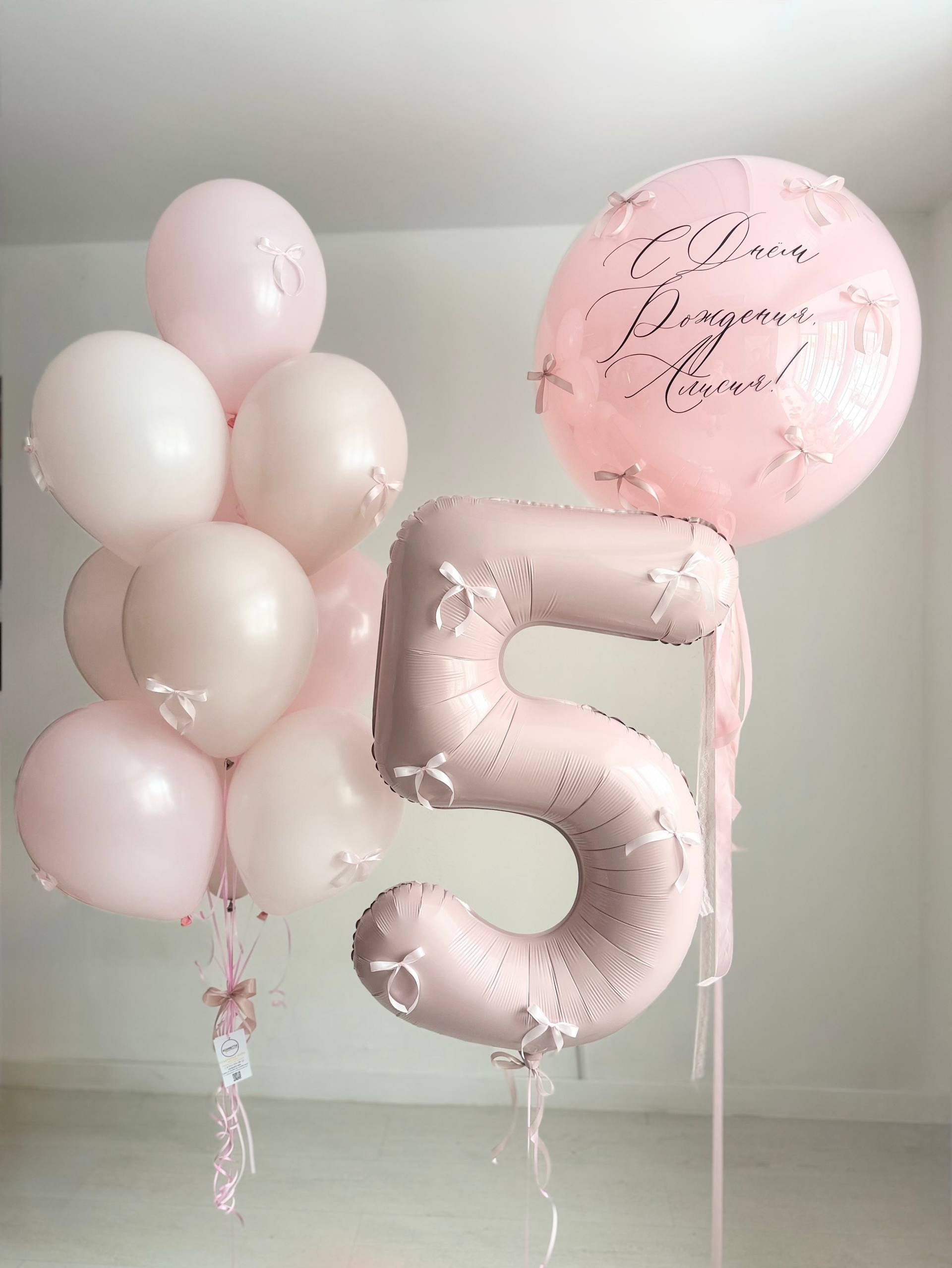Стильные нюдовые шарики пыльная роза/розовый бантики №4761
