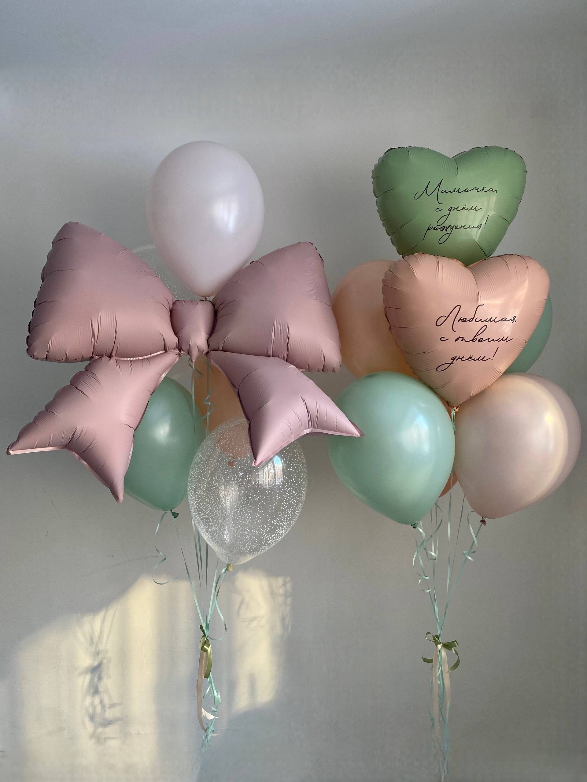Воздушные гелиевые шарики нежные цвета бант эвкалипт/киви№4767
