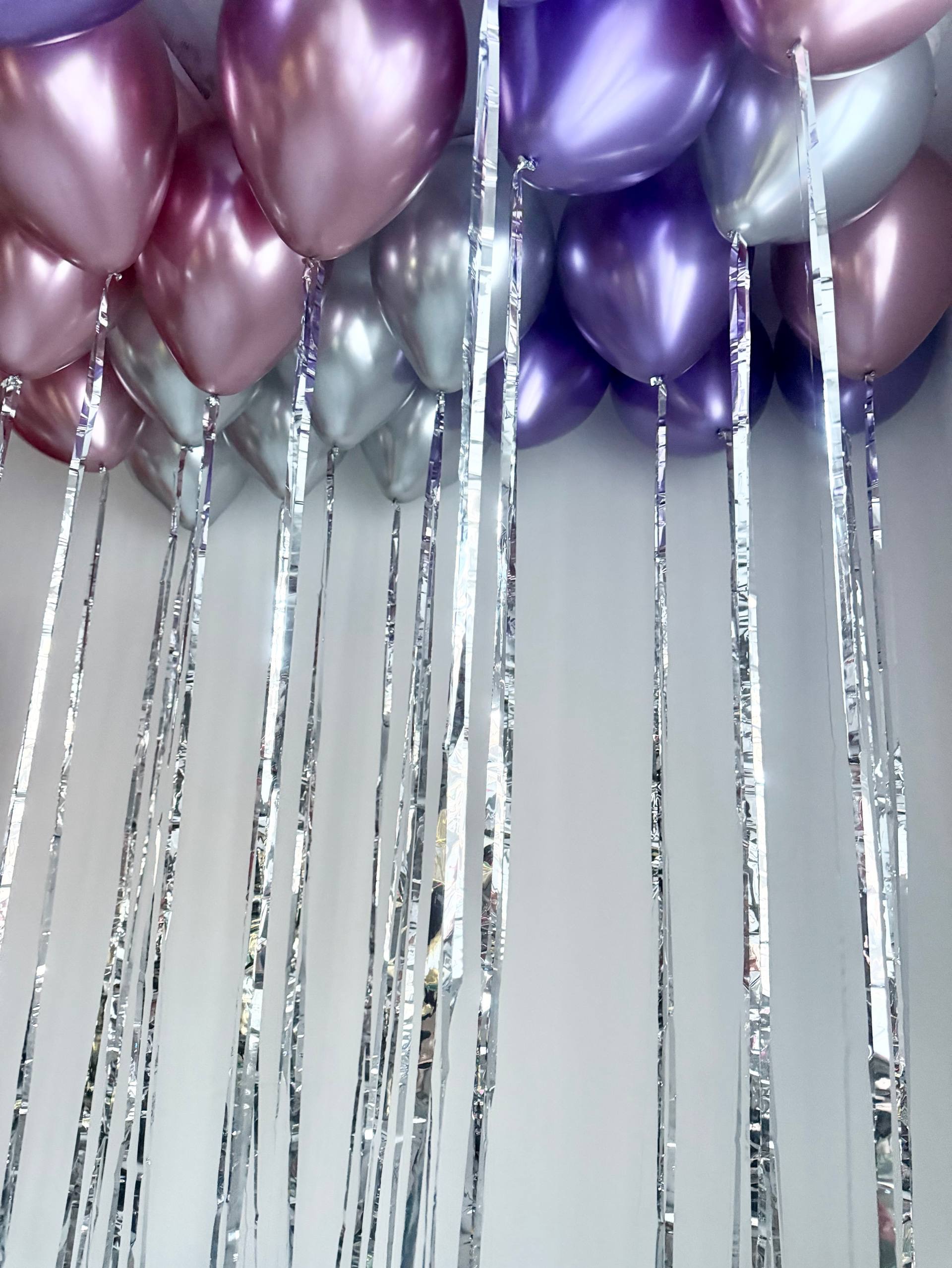 Воздушные гелиевые шары под потолок хром с дождиком №4773