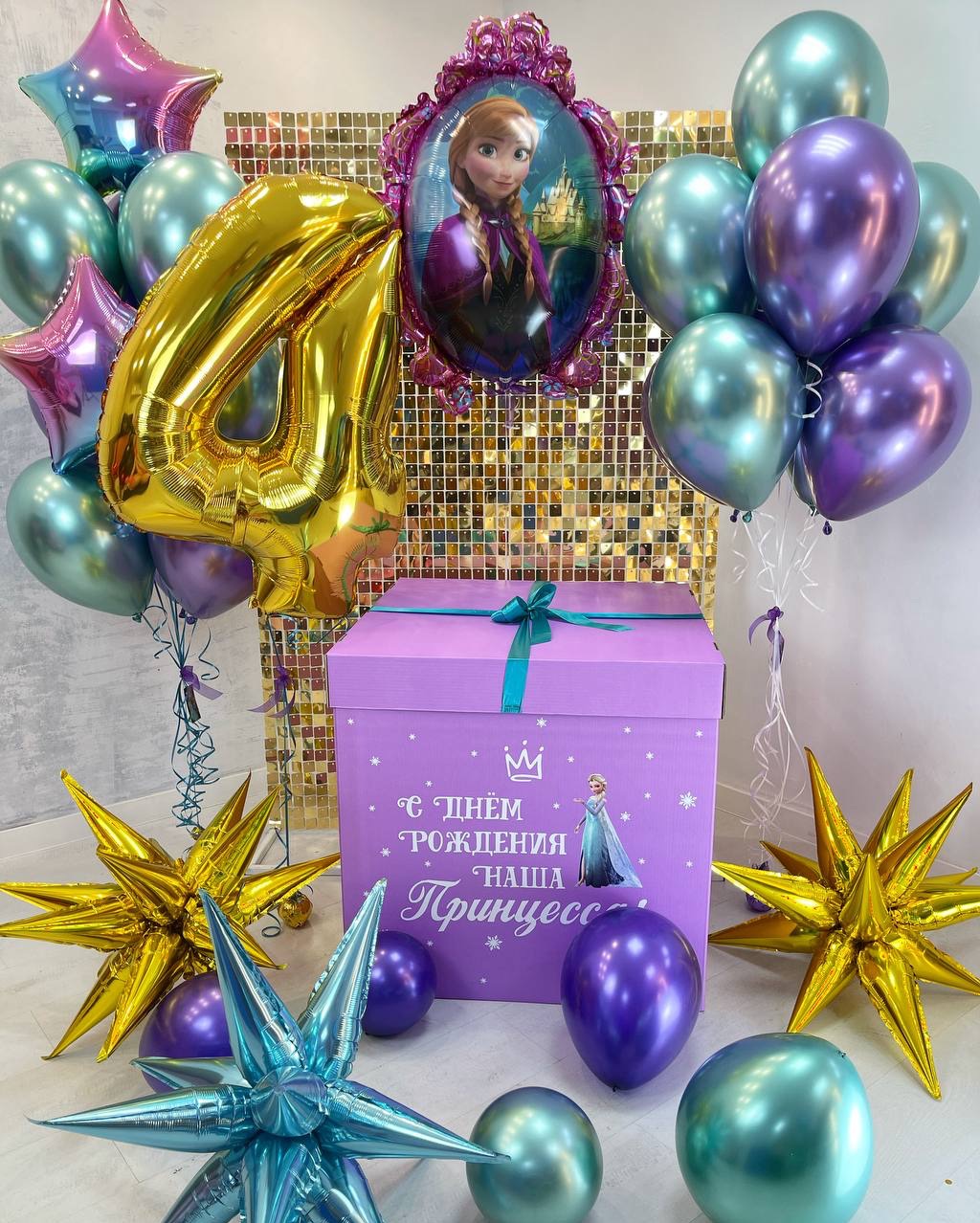 Шары Эльза/Анна/Холодное сердце хром бирюза/фиолетовый №4775