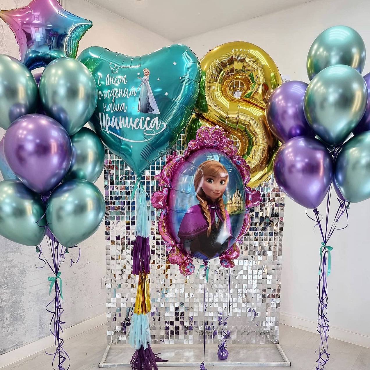 Воздушные гелиевые шары Эльза/анна/Холодное сердце/Зеркало хром фиолетовый/бирюзовый №4776