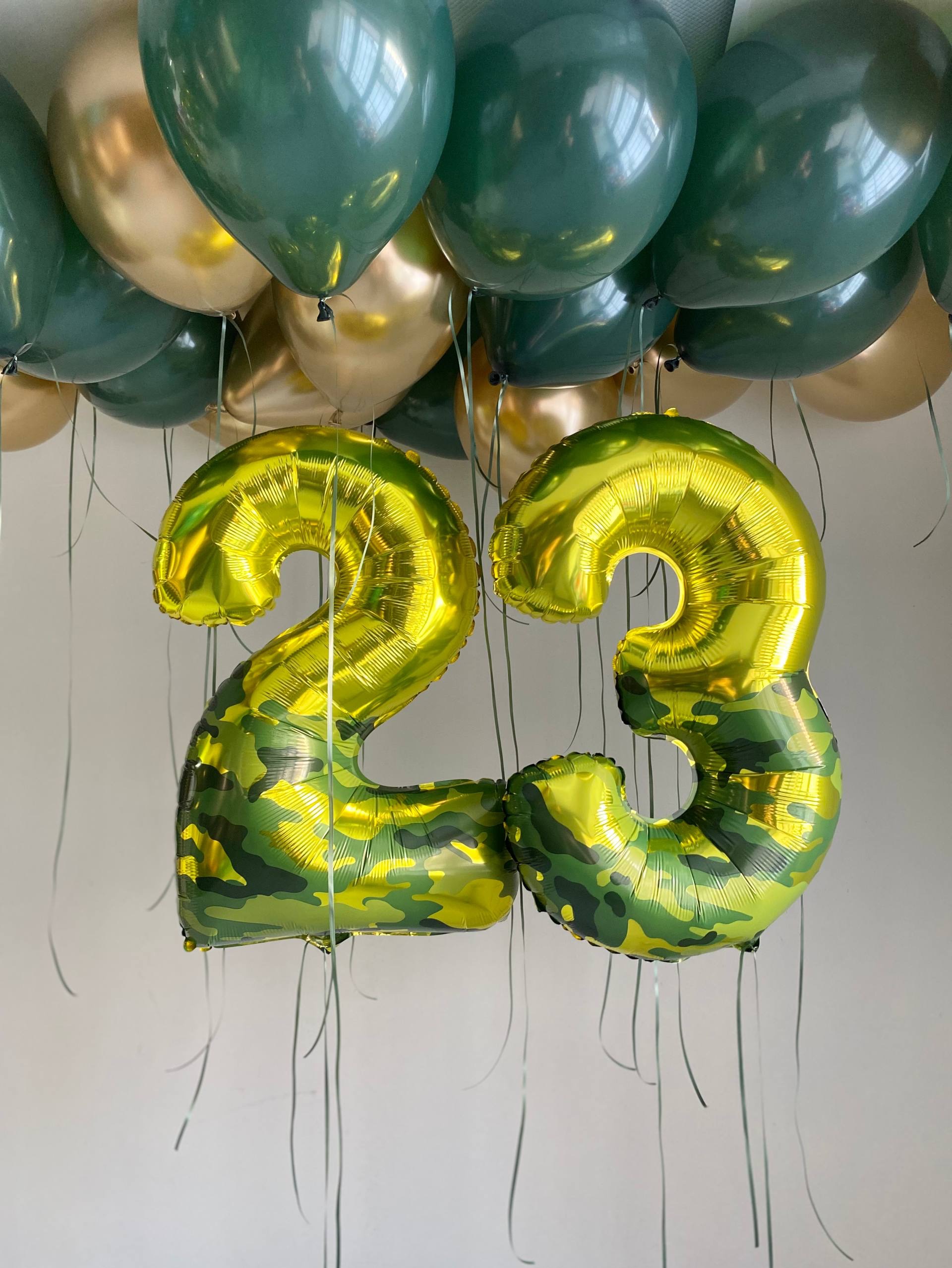 Воздушные гелиевые шарики с доставкой по Хабаровску цифры камуфляж №4781