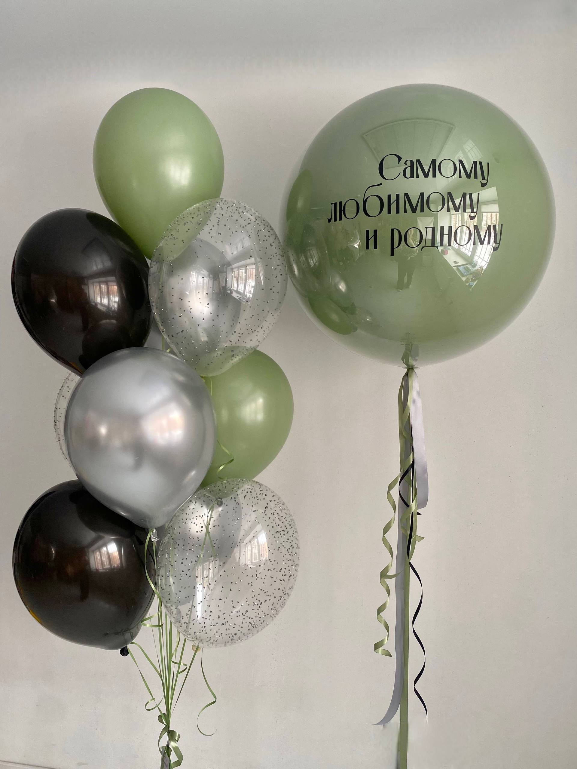 Шары на день рождение мужу эвкалипт/черный/серебро №4805