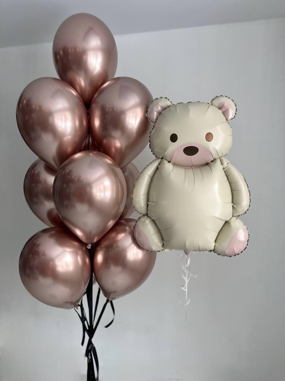 Воздушные гелиевые шары мишка хром розовое золото №4815
