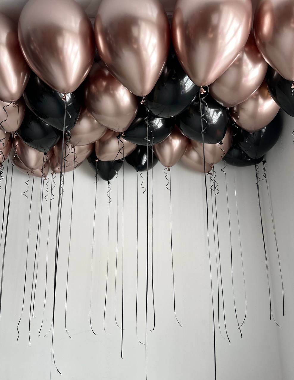 Воздушные гелиевые шары под потолок хром розовое золото/черный №4818