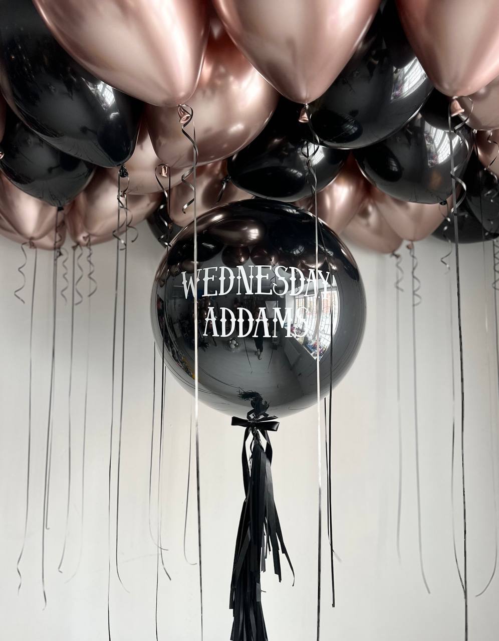 Воздушные гелиевые шары Венздей розовое золото/черный №4819