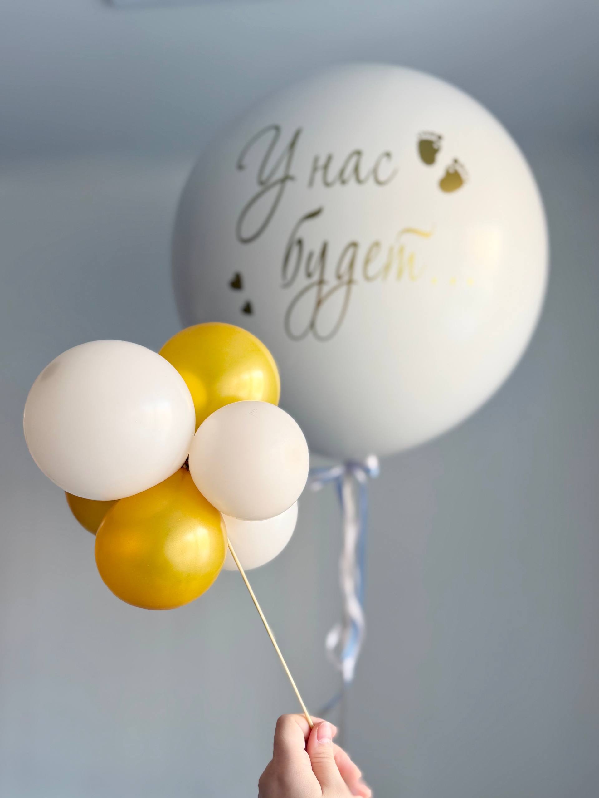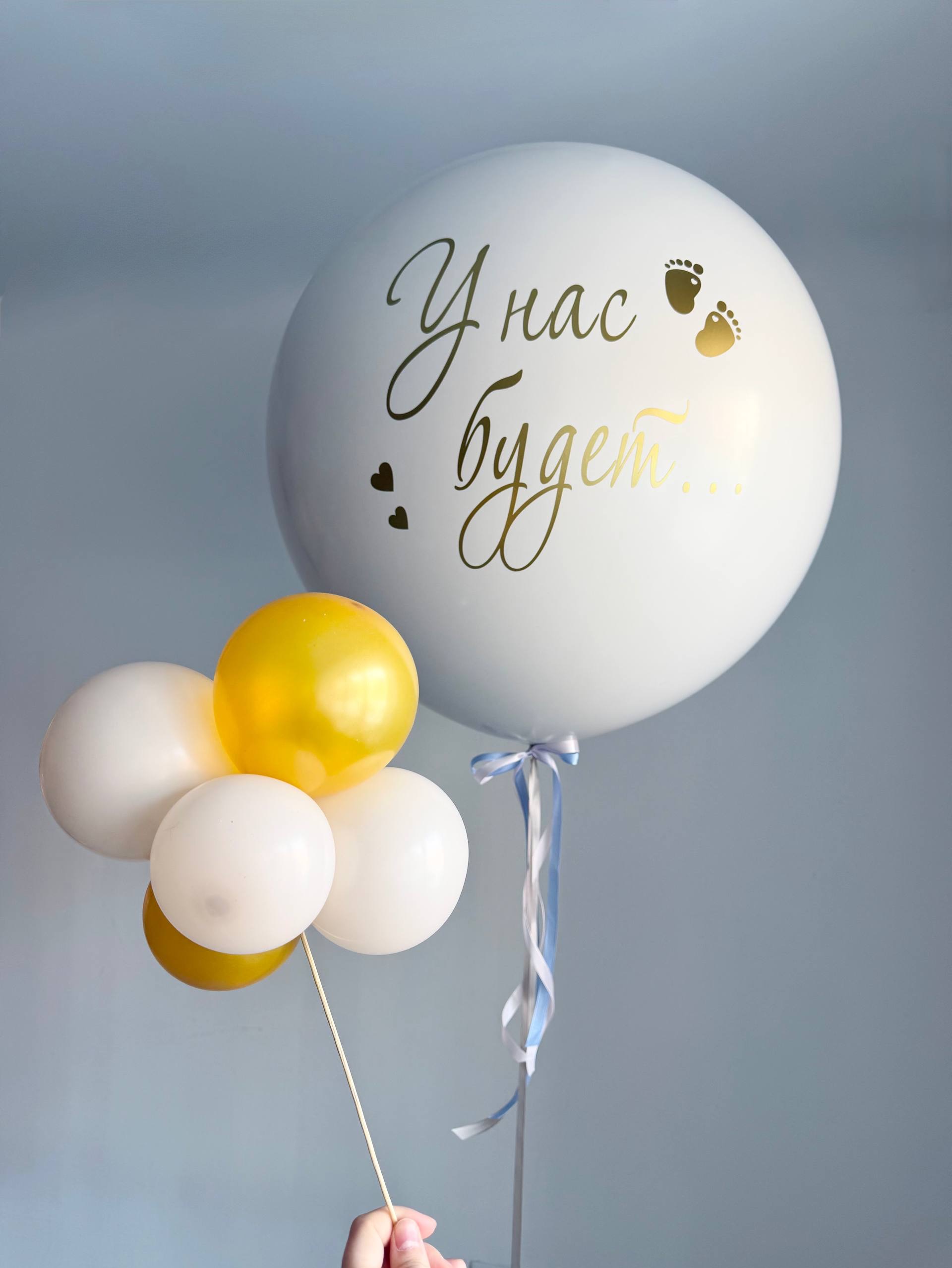 Шар на гендер пати с конфетти и маленькими шарами внутри " У нас будет... " №4944