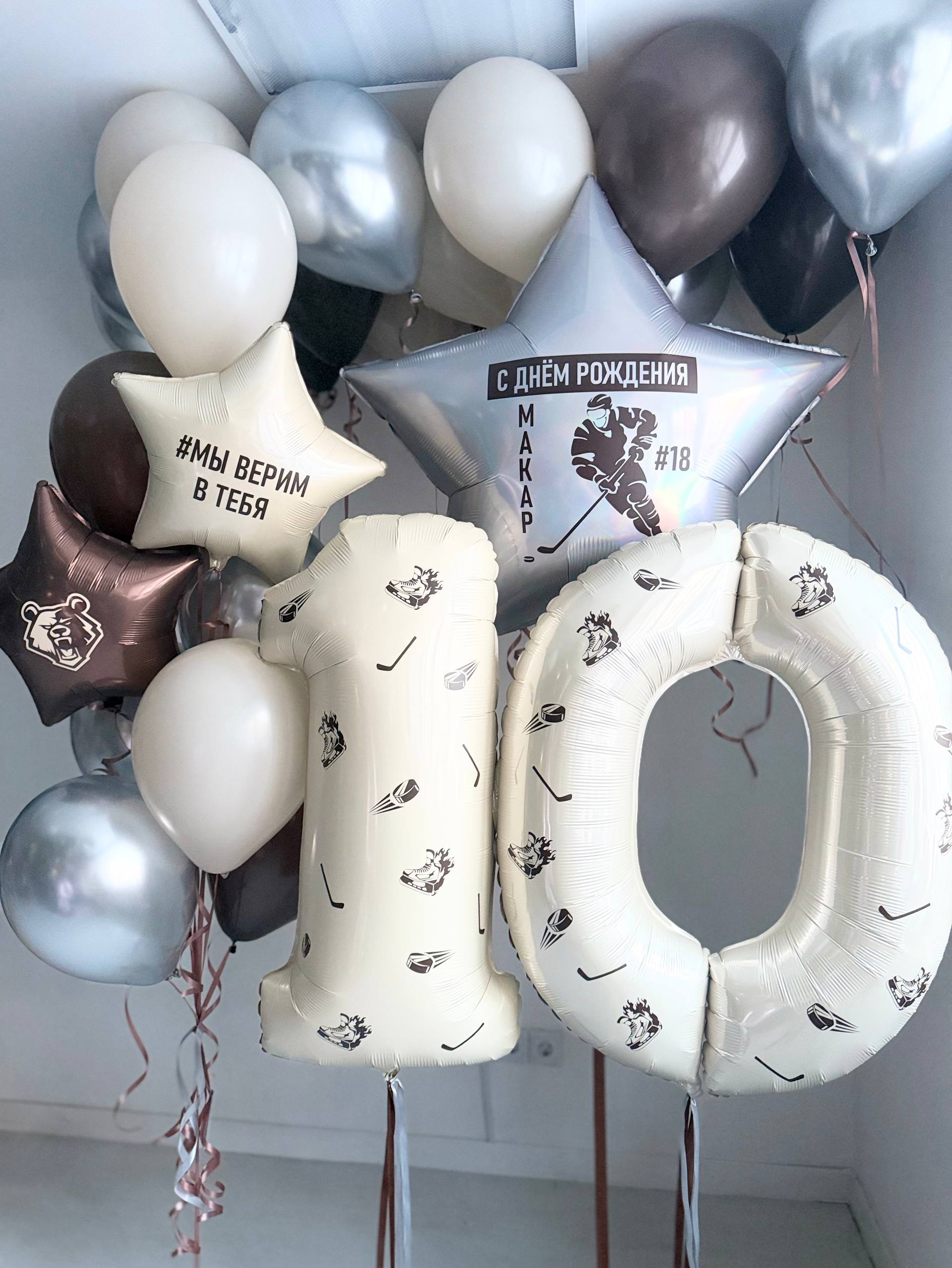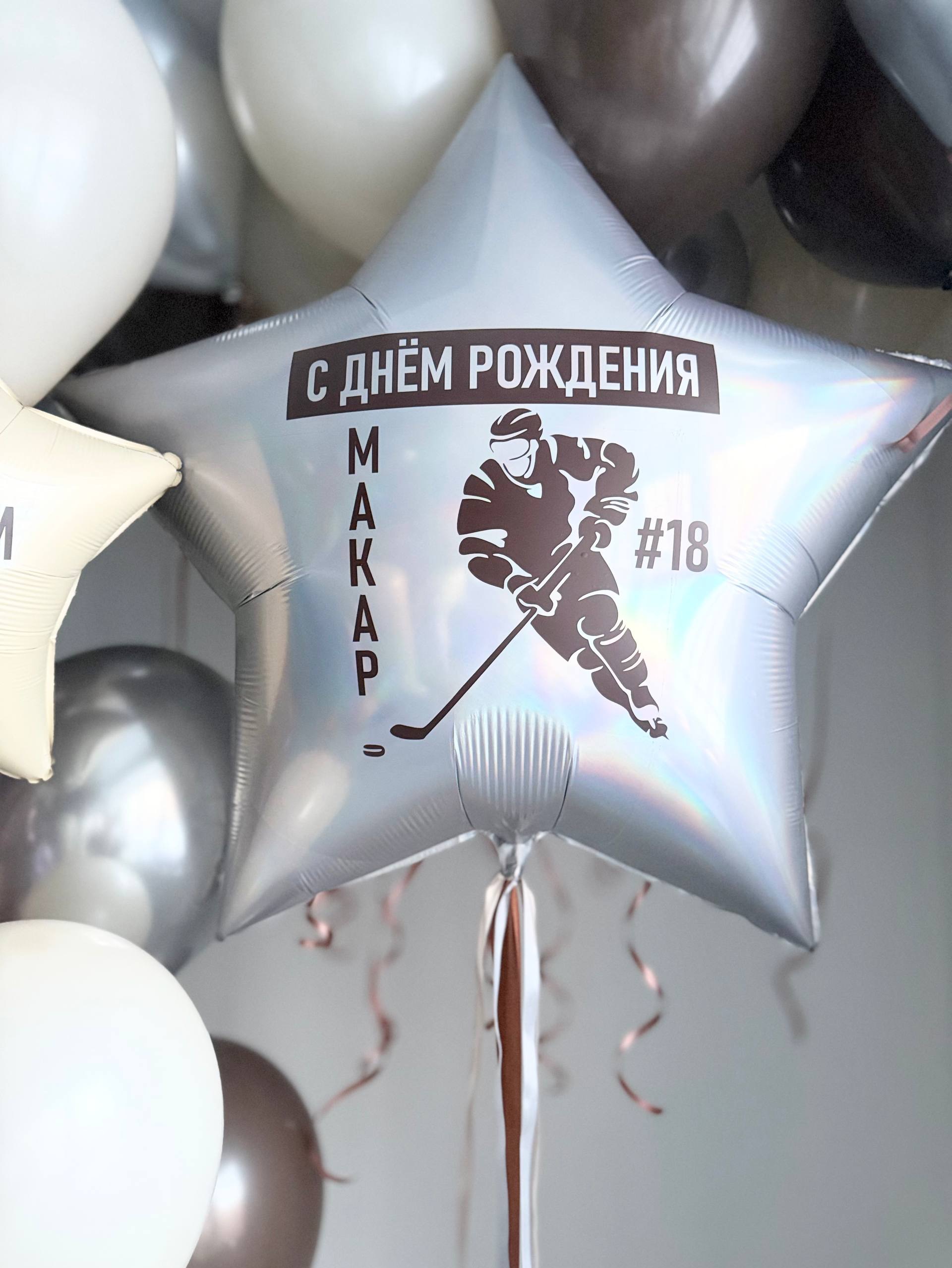 Воздушные гелиевые шары тематика хоккей/клюшка/шайба шоколад/песок/хром серебро №4948