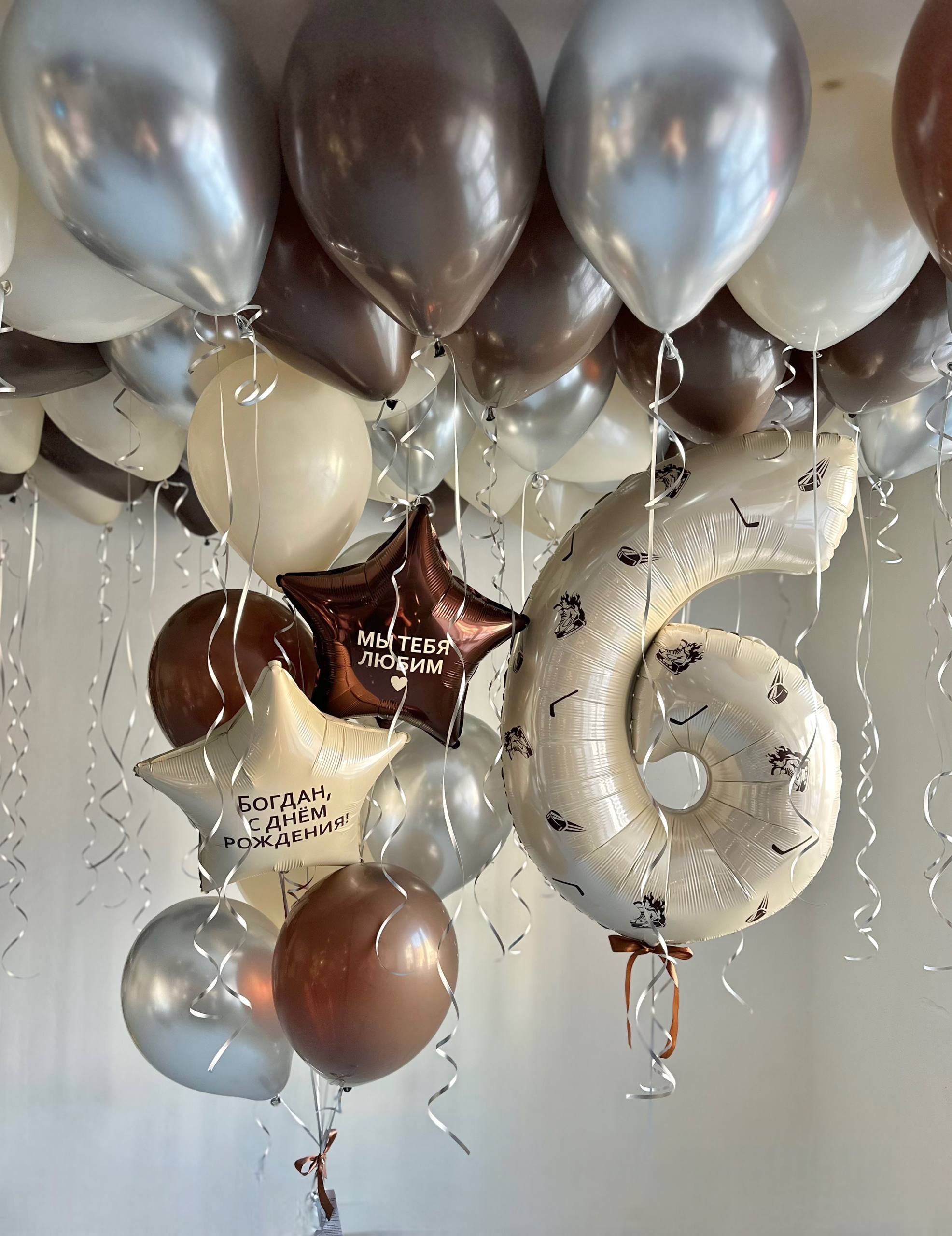 Воздушные гелиевые шарики с доставкой по Хабаровску хоккей шоколад/песок №4954