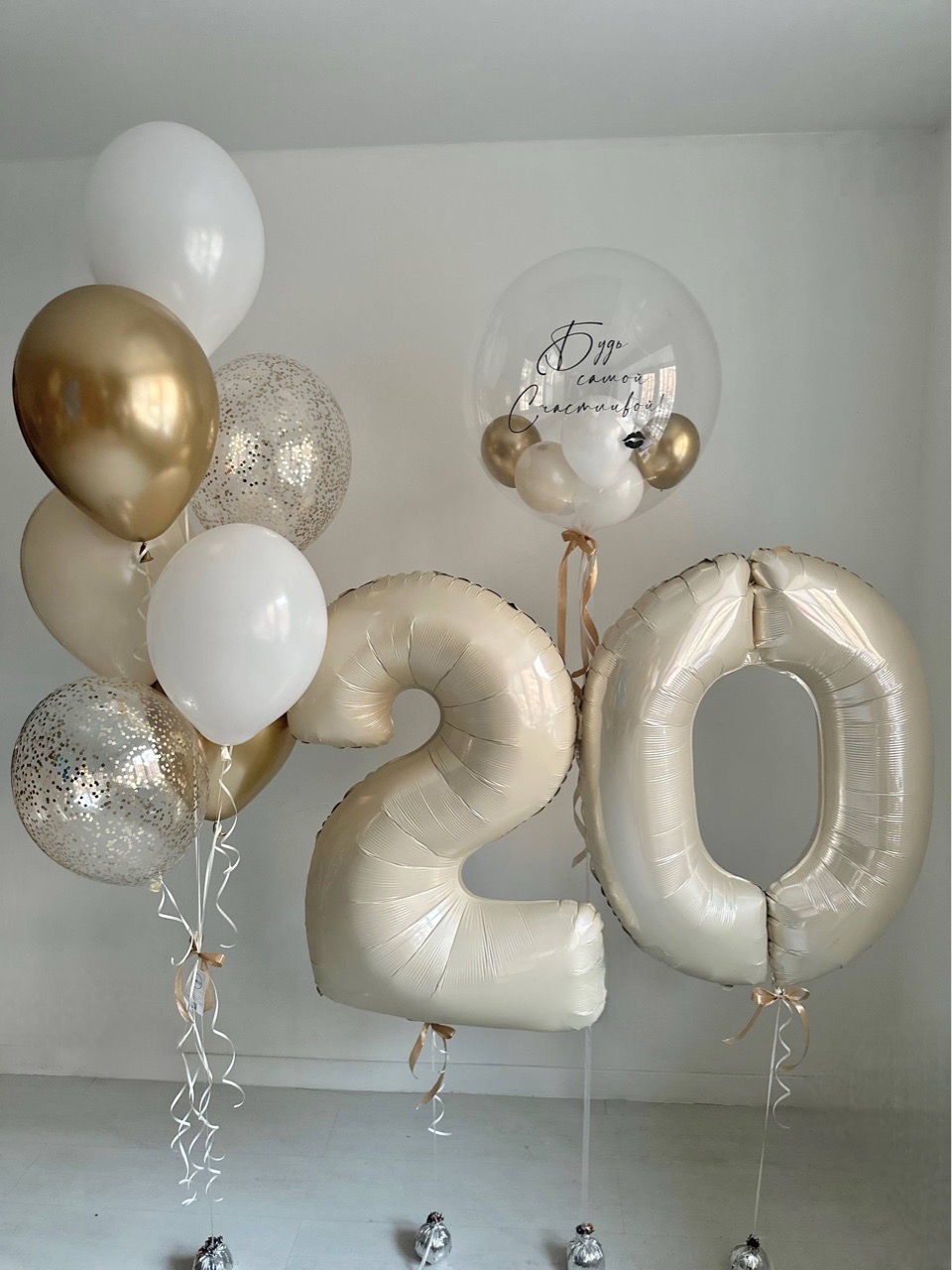 Воздушные гелиевые шарики цифры 20 песок/золото/белый №4973
