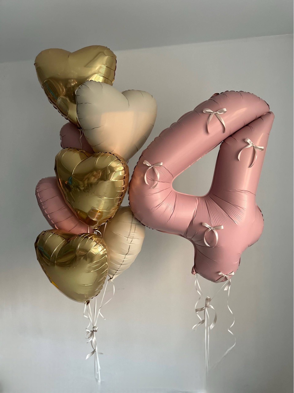 Воздушные гелиевые шары цифра 4 пыльная роза/песок/золото №4979