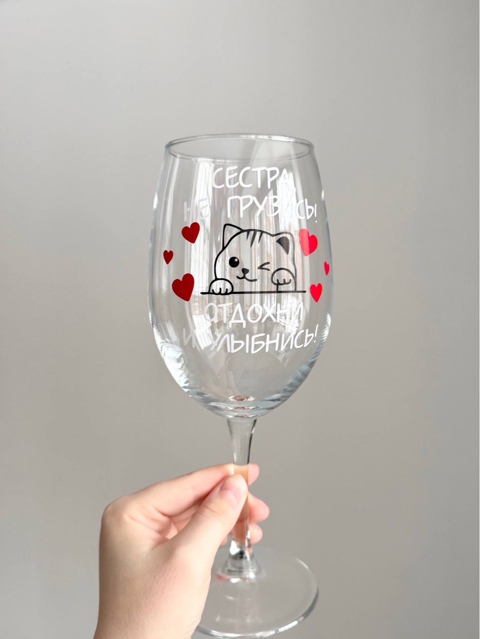 Бокал с надписью для сестры кошка №5042