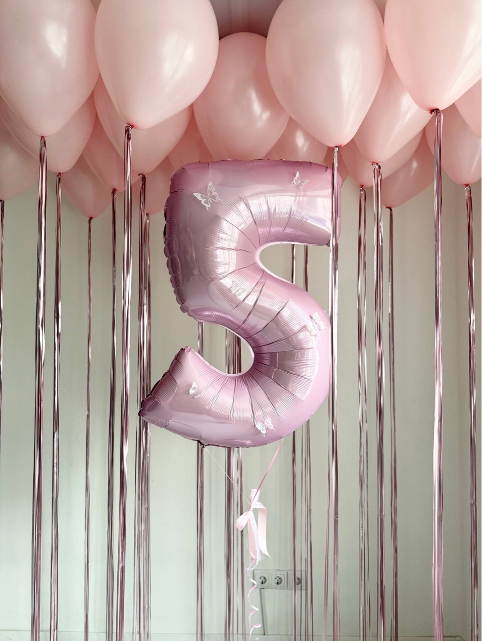 Воздушные гелиевые шарики с доставкой по Хабаровску дождик/бабочки №5088