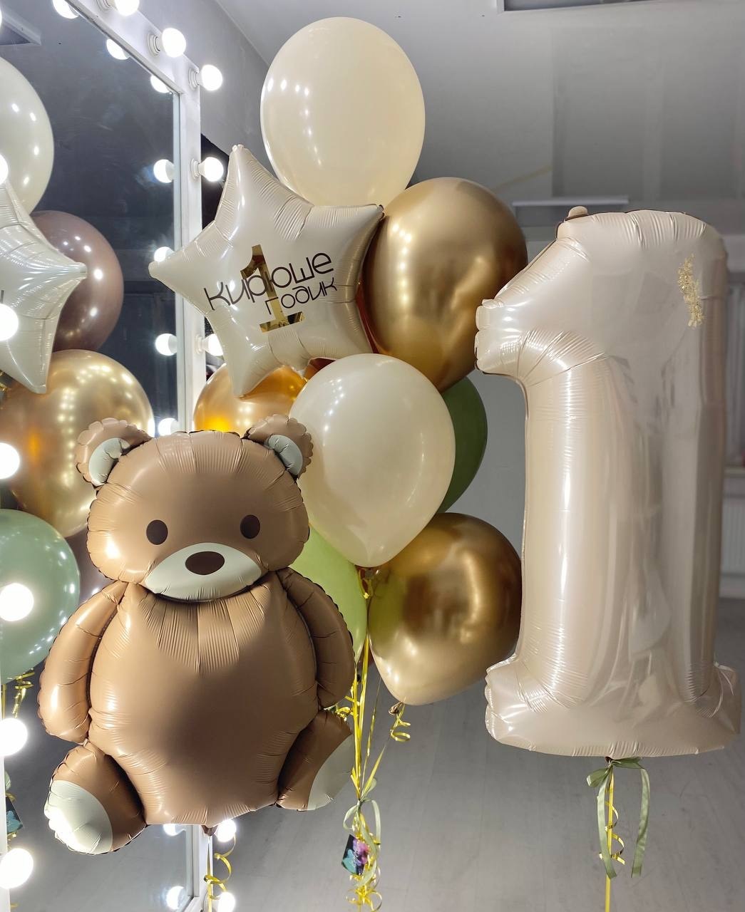 Воздушные шары с цифрой 1, Мишка №2477