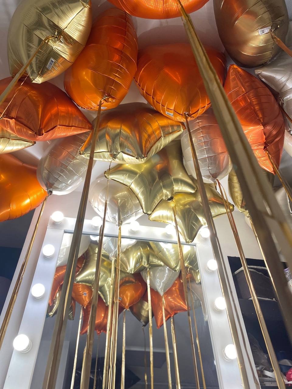 Воздушные шары звезды и сердца с дождиком на потолок №2745