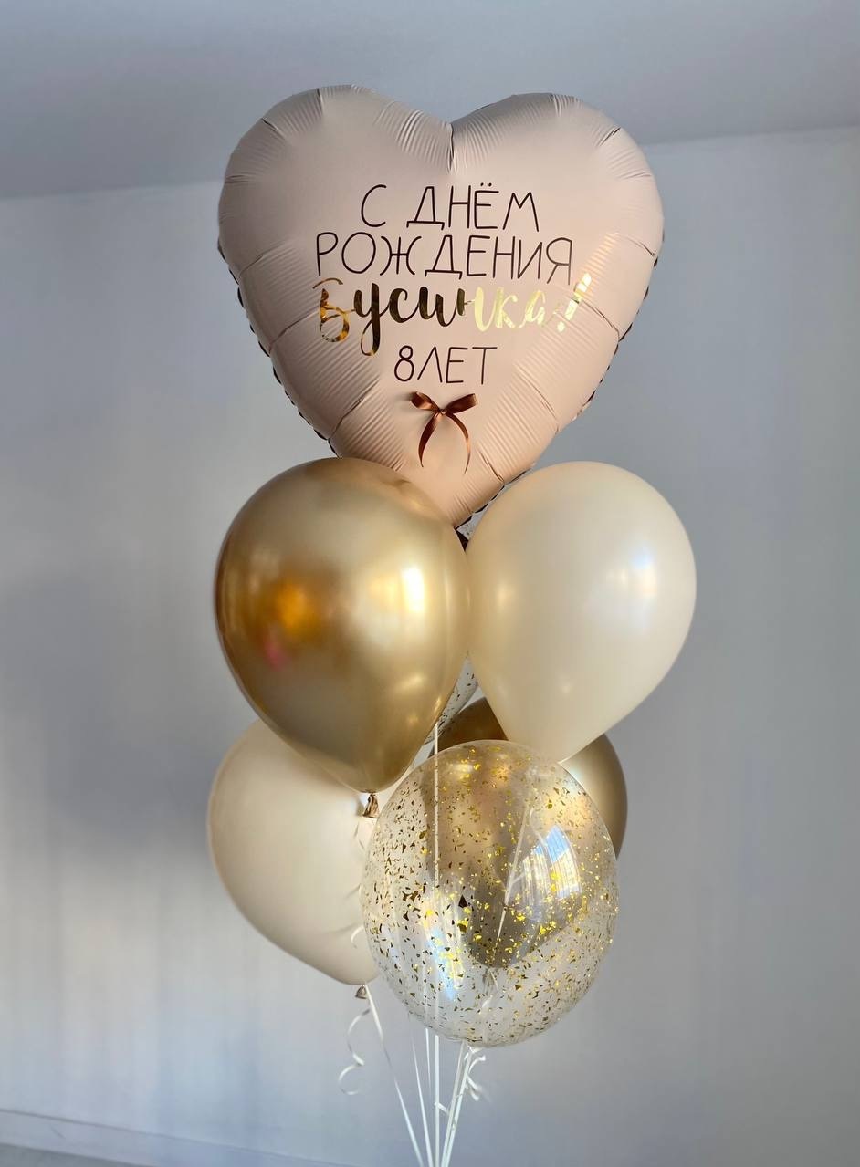 Воздушные шары кремовые " С Днём Рождения, Бусинка! " №2933