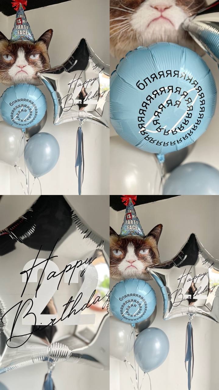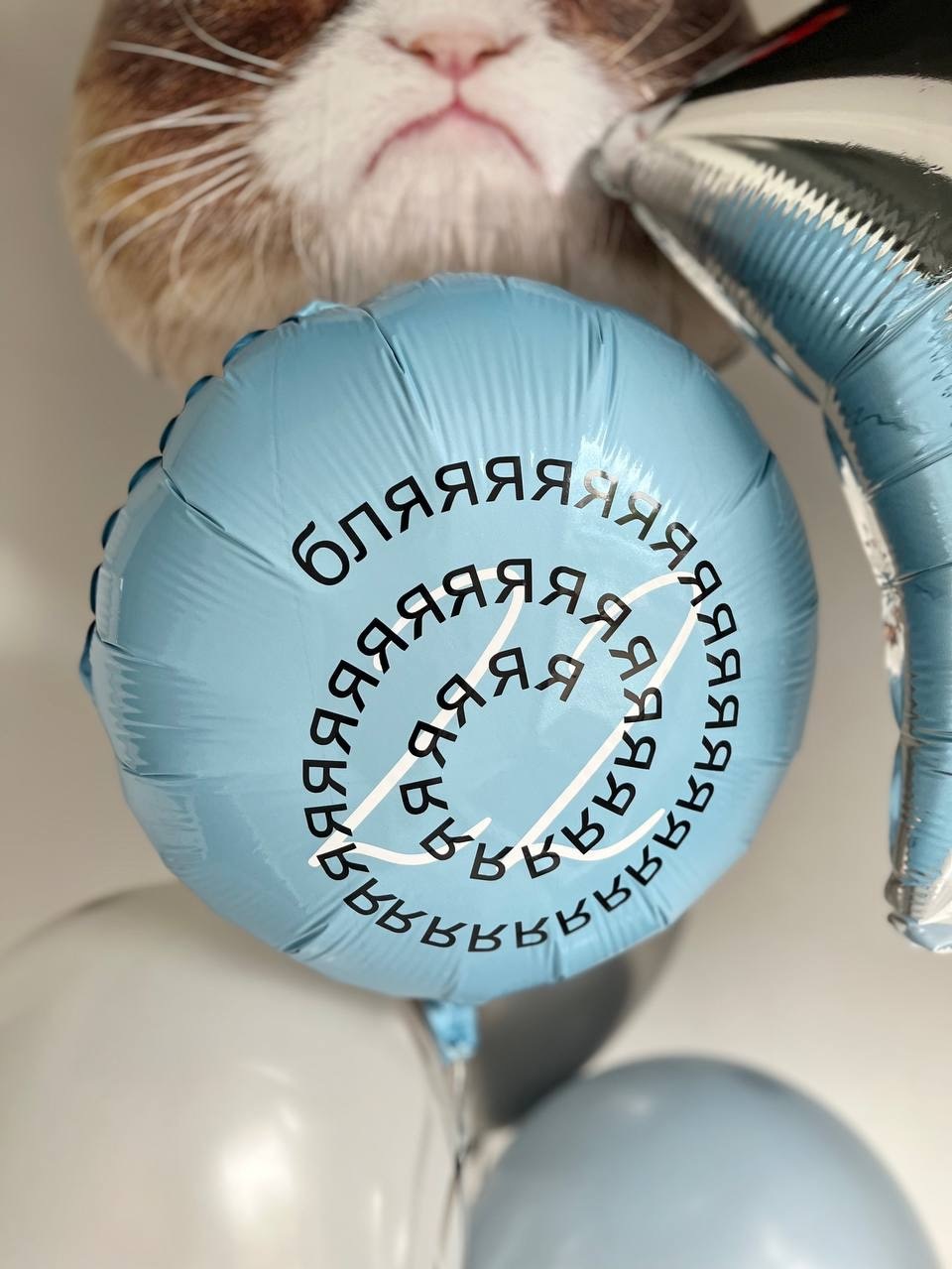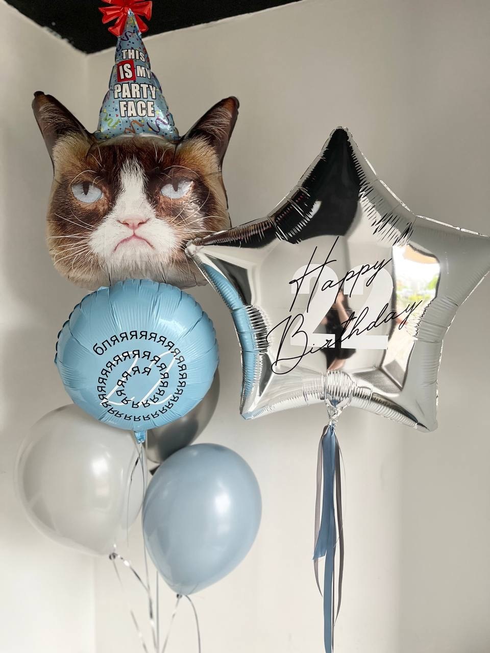 Воздушные шары сердитый кот голубой/серебро/белый №3337