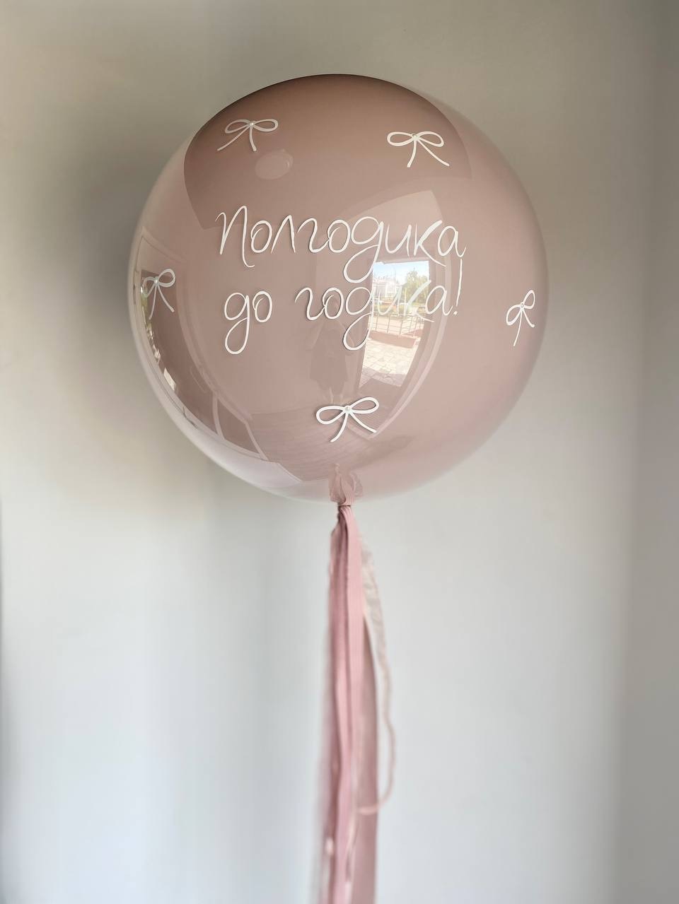 Воздушные шары на пол годика пыльная роза бантики№3347
