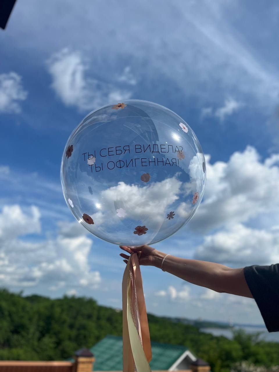 большой прозрачный шар с цветочками №3350