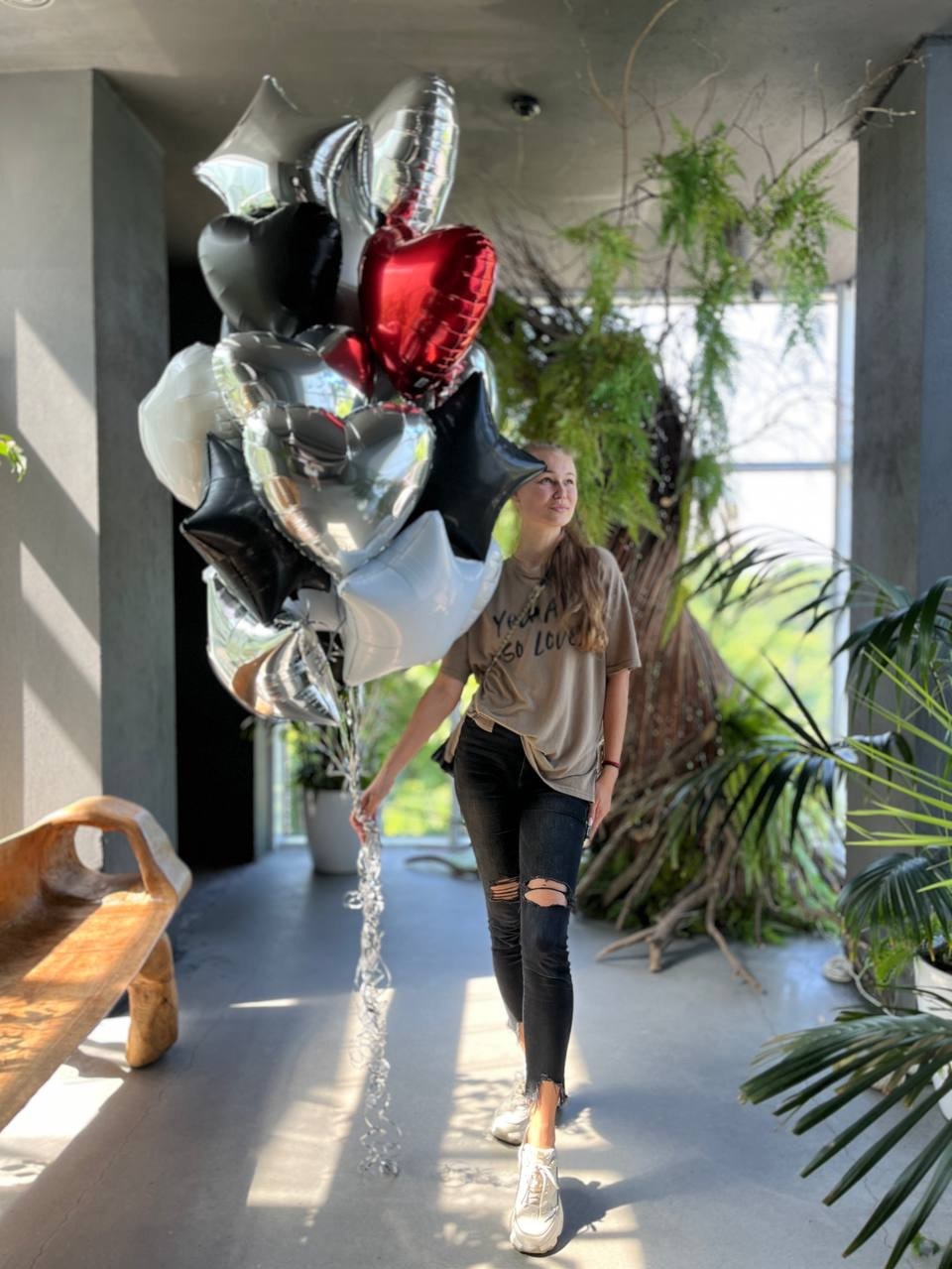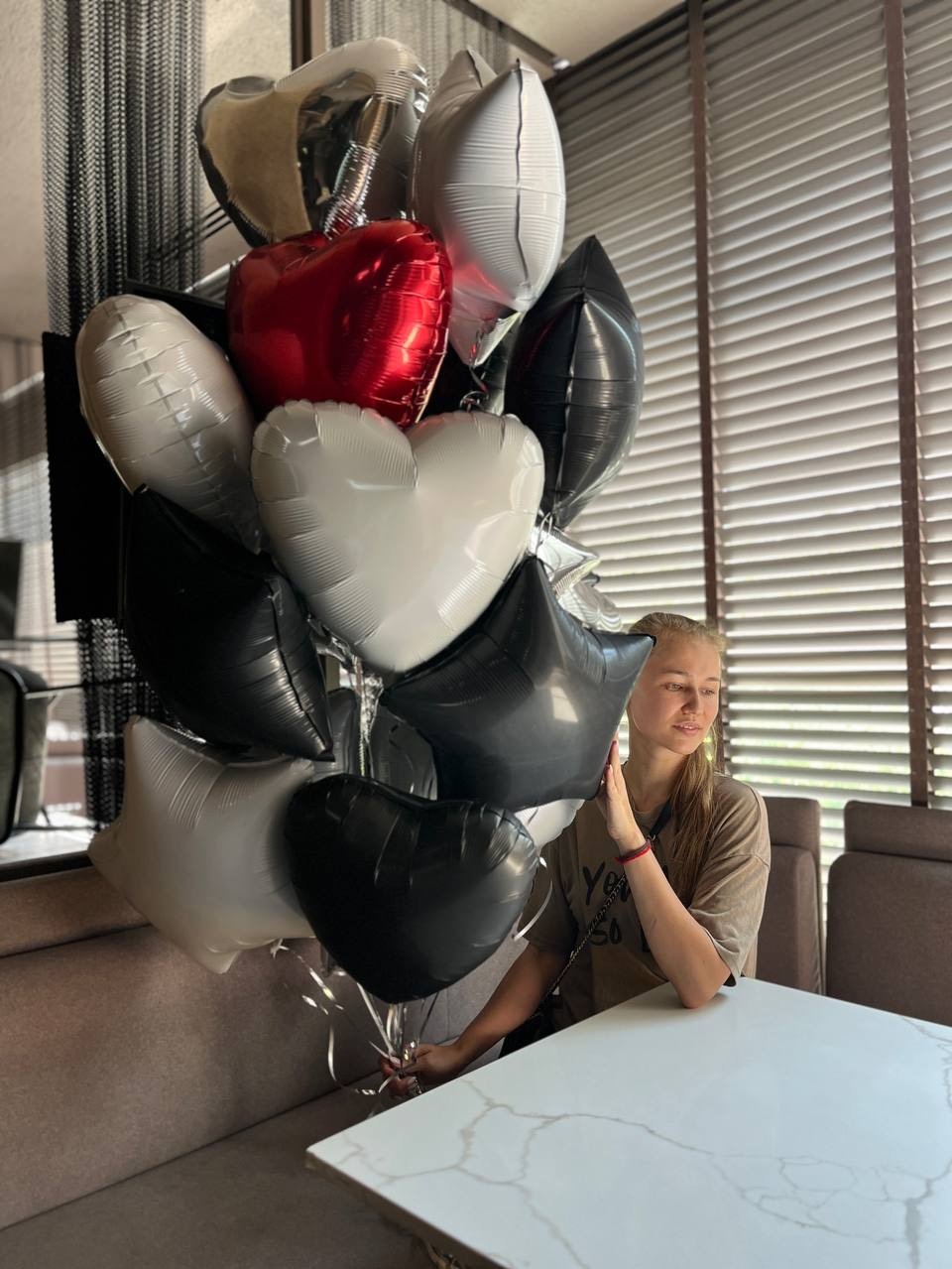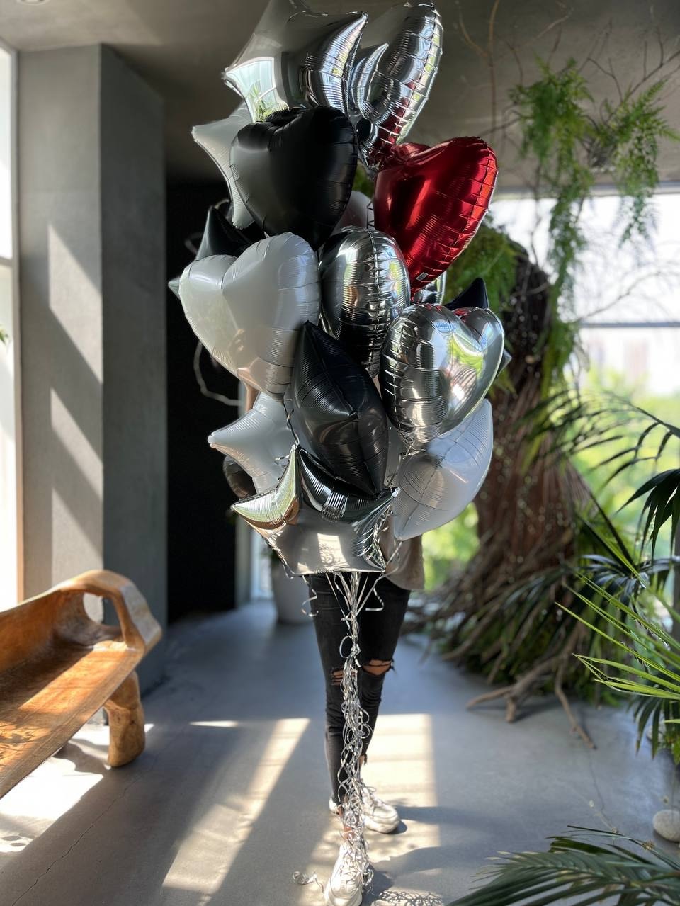 Воздушные шары охапка сердца/звезды белый/черный/серебро/красный №3396