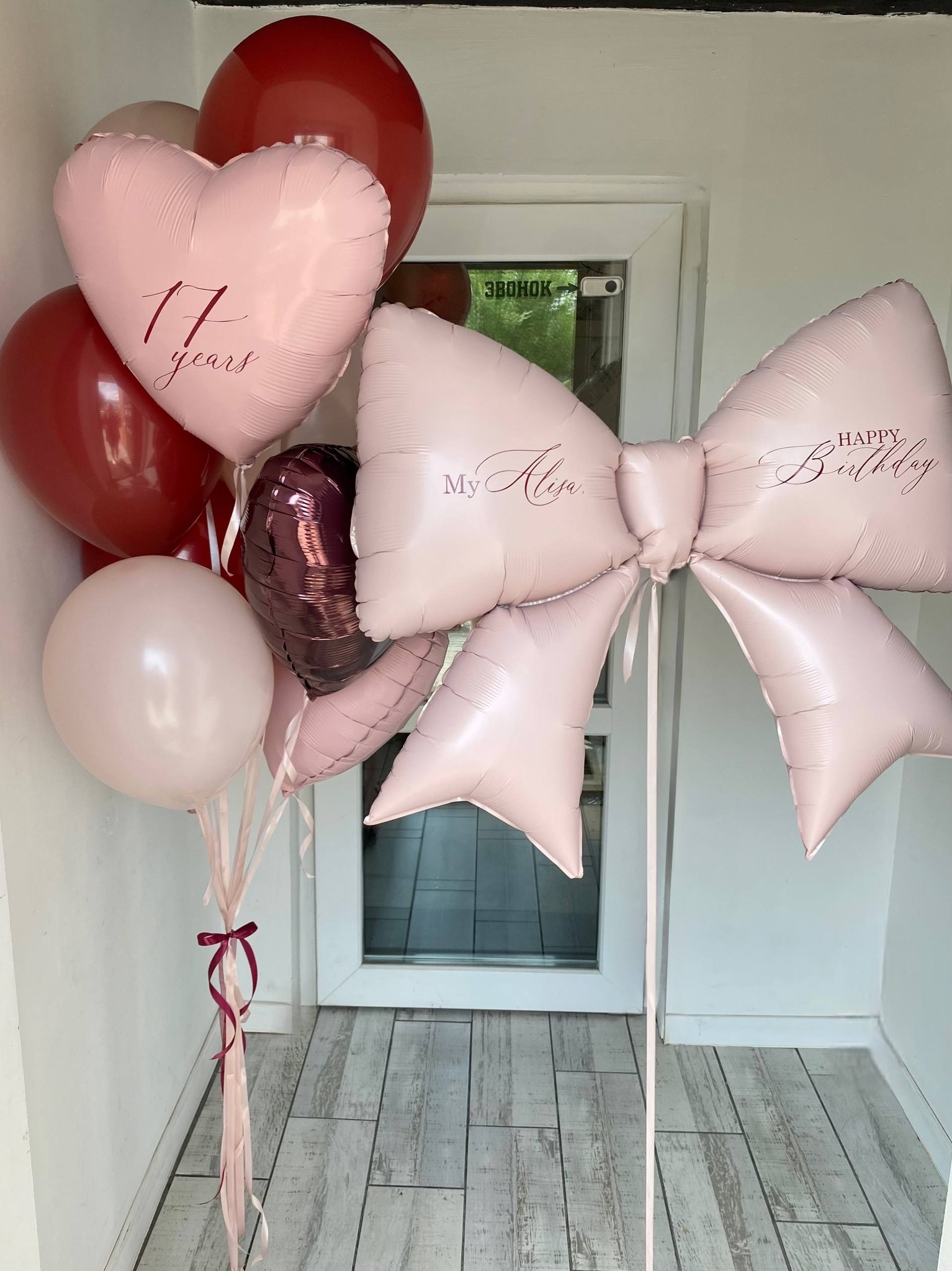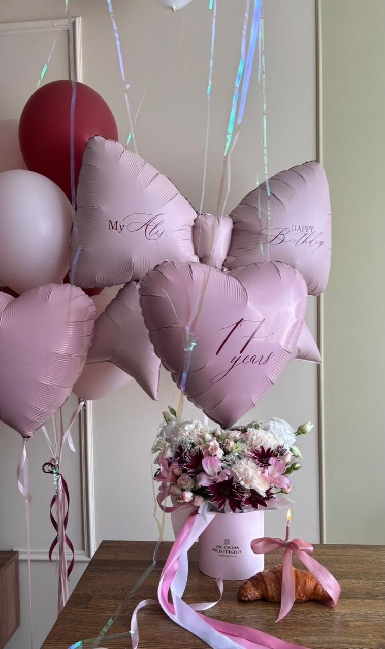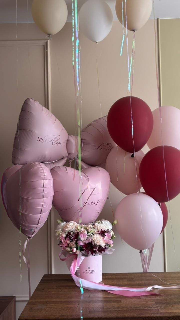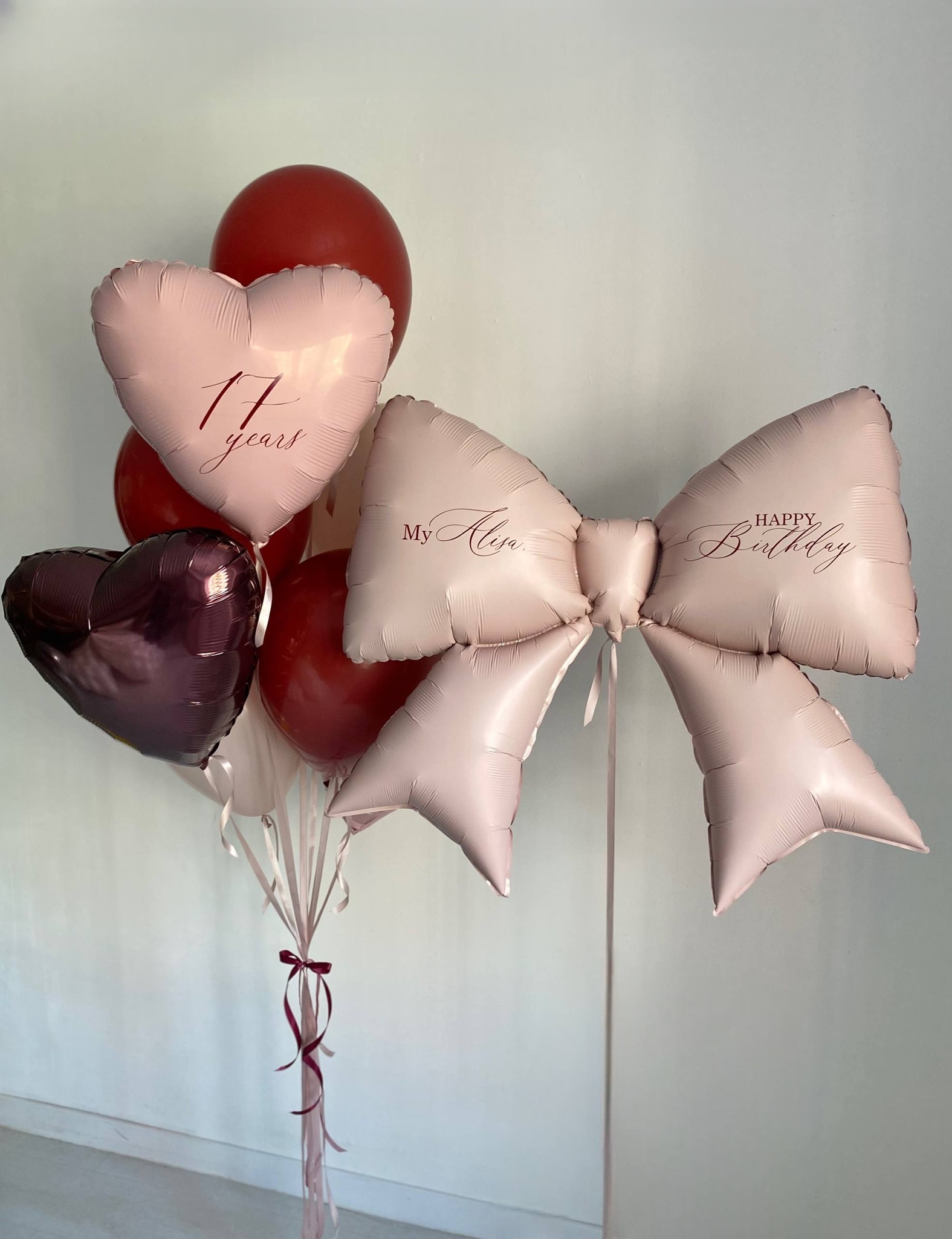 Воздушные шары бордовый/бургундия/мерло/пыльная роза бант №3399