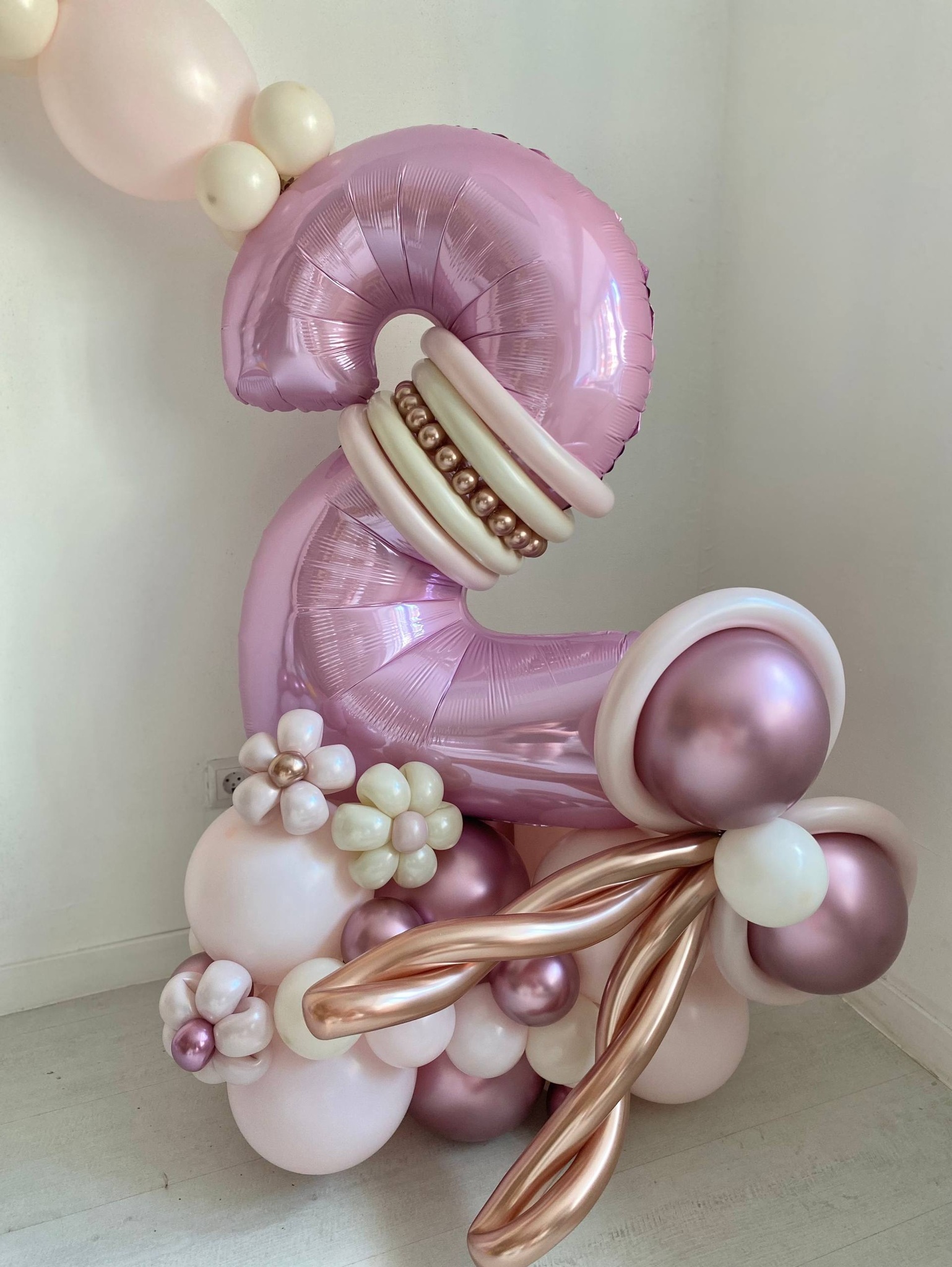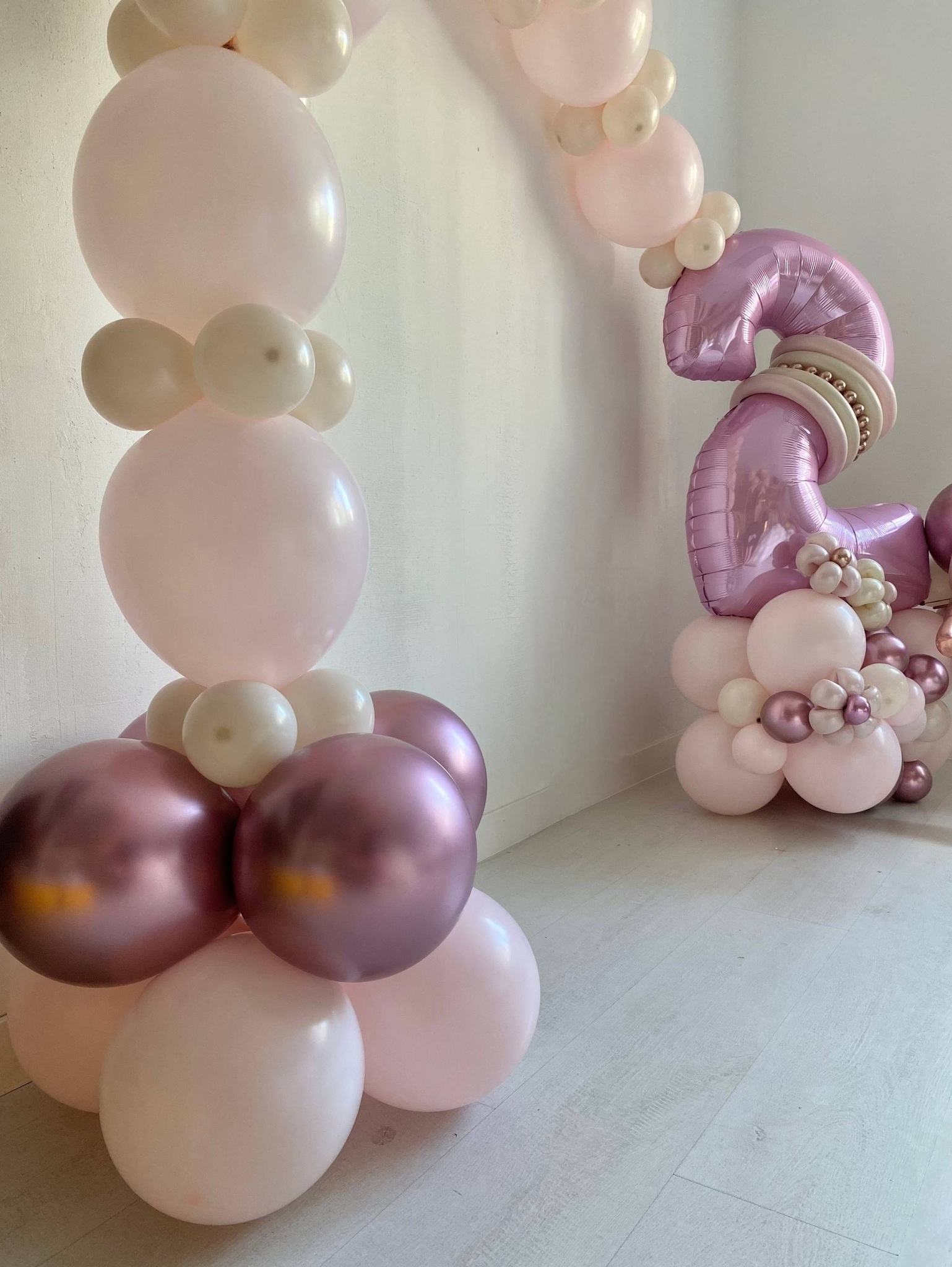 Воздушные шары на 2 годика Арка пыльная роза/крем/песок/розовое золото №3400