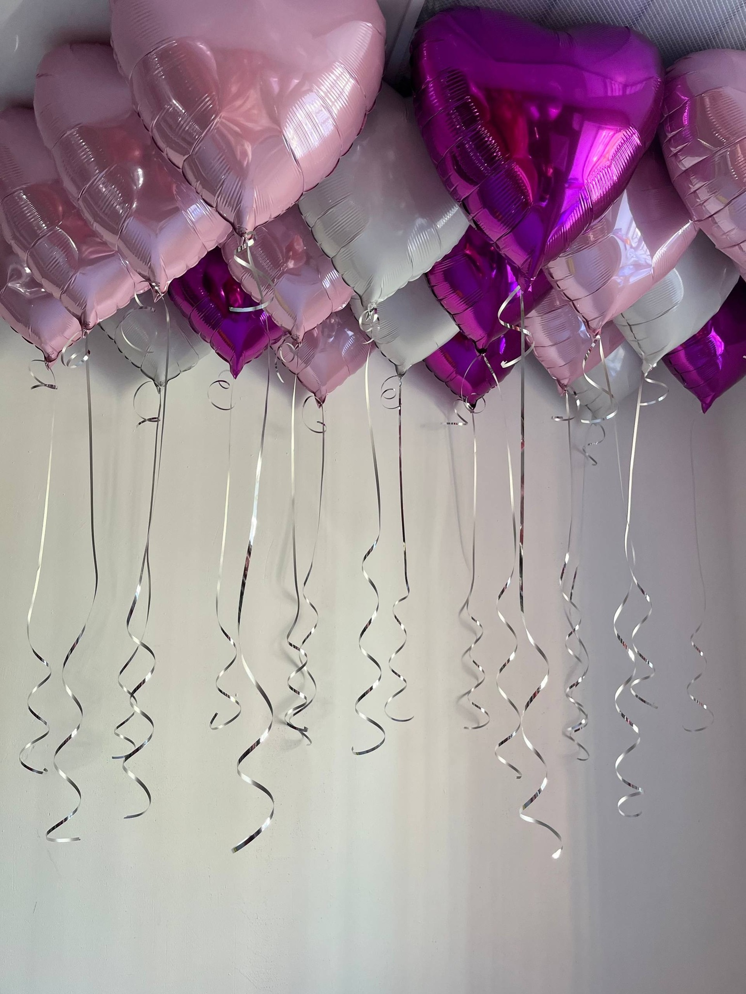 Воздушные шары под потолок сердца розовый/белый/фуксия №3401