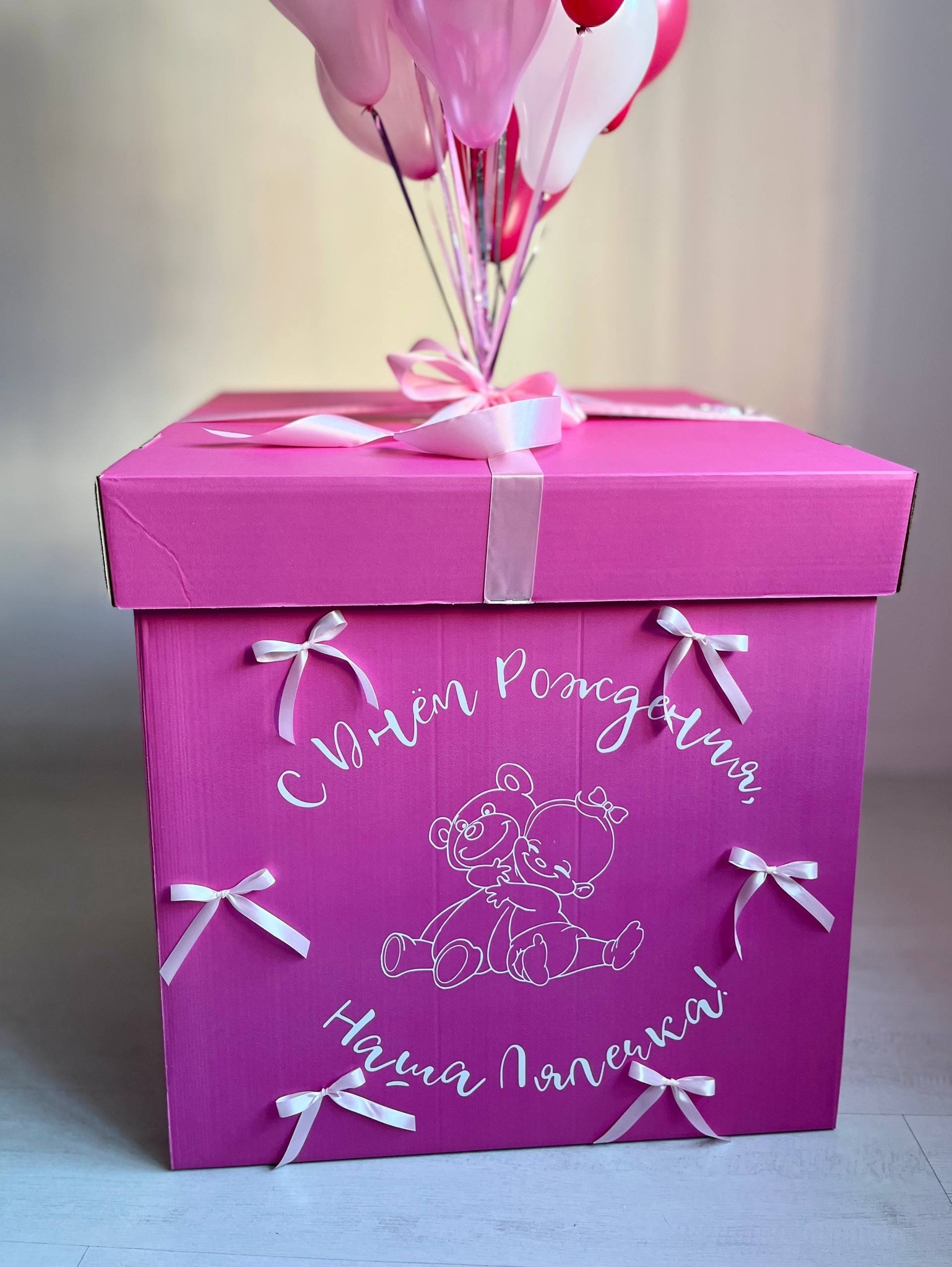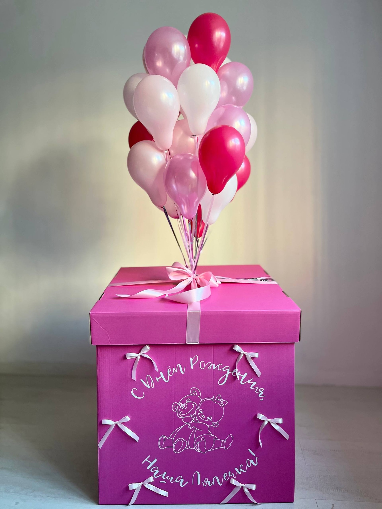 Воздушные шары большая коробка сюрприз розовый/фуксия №3404