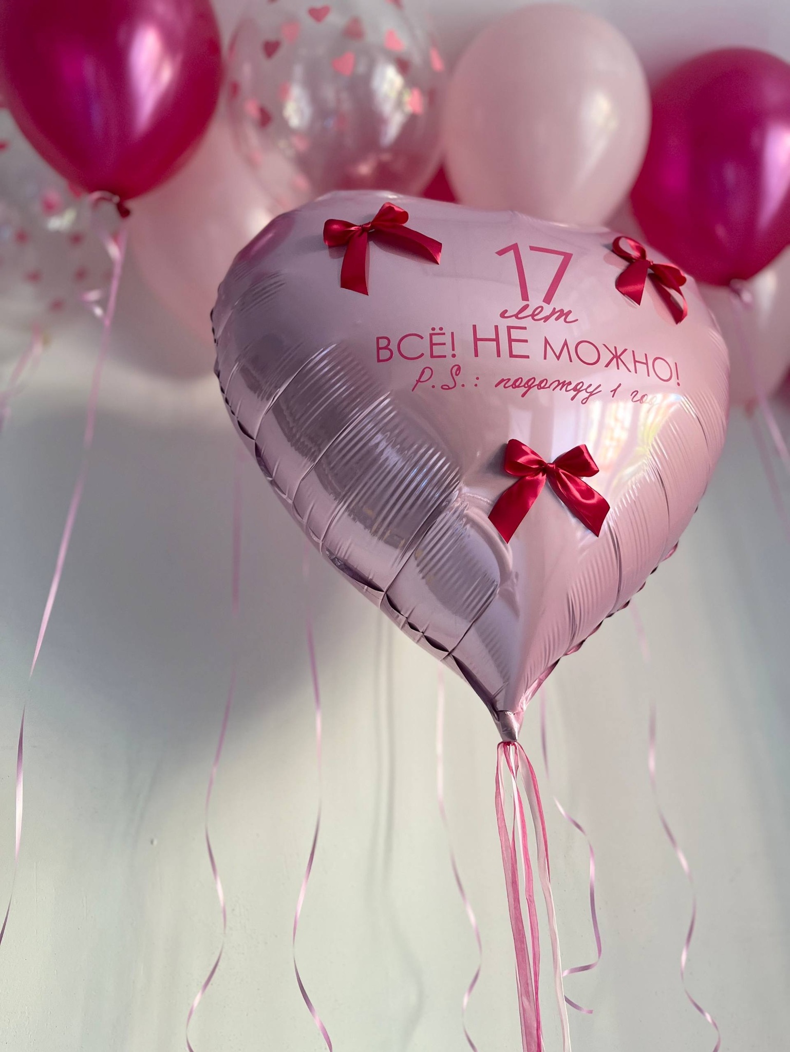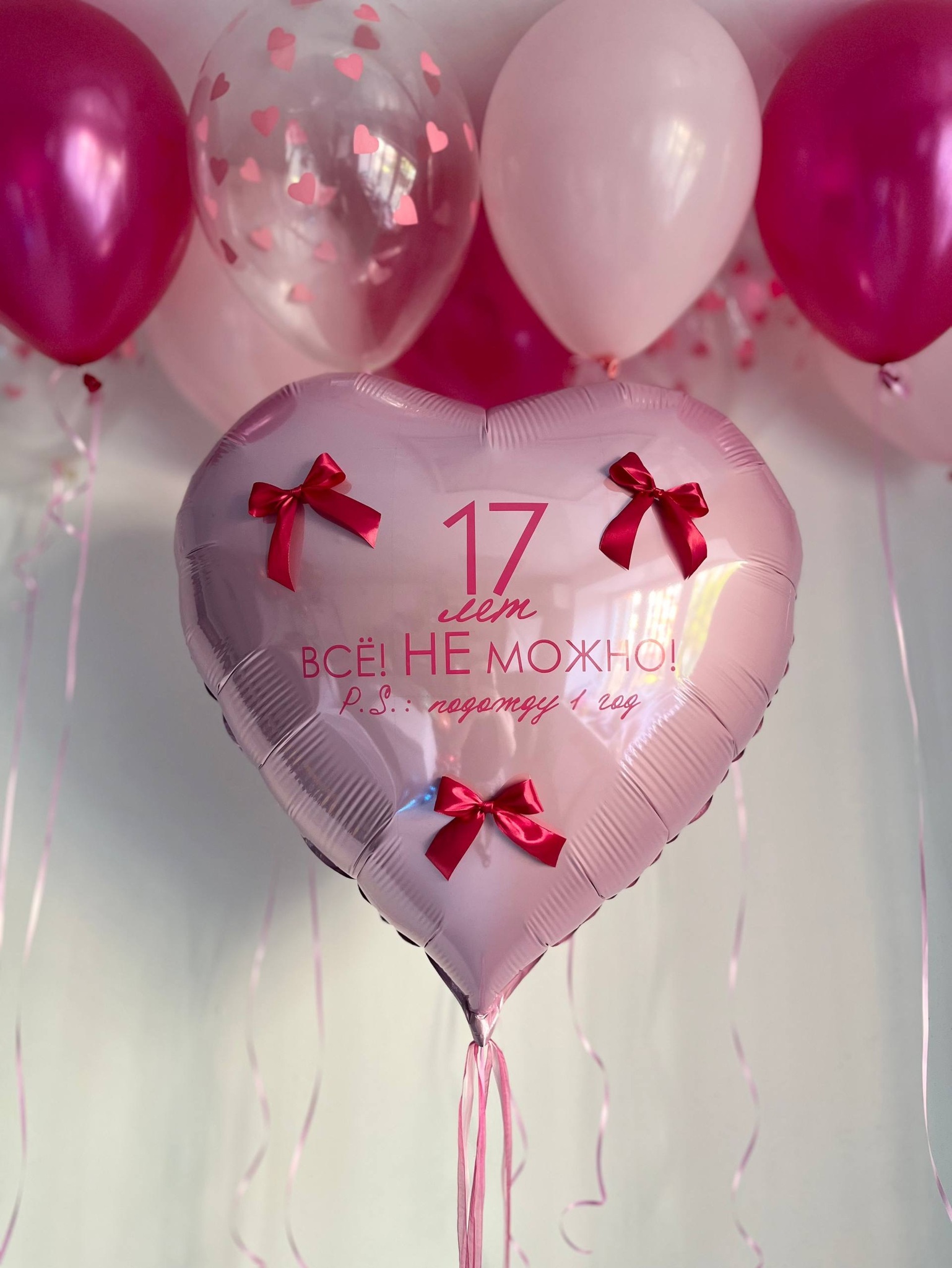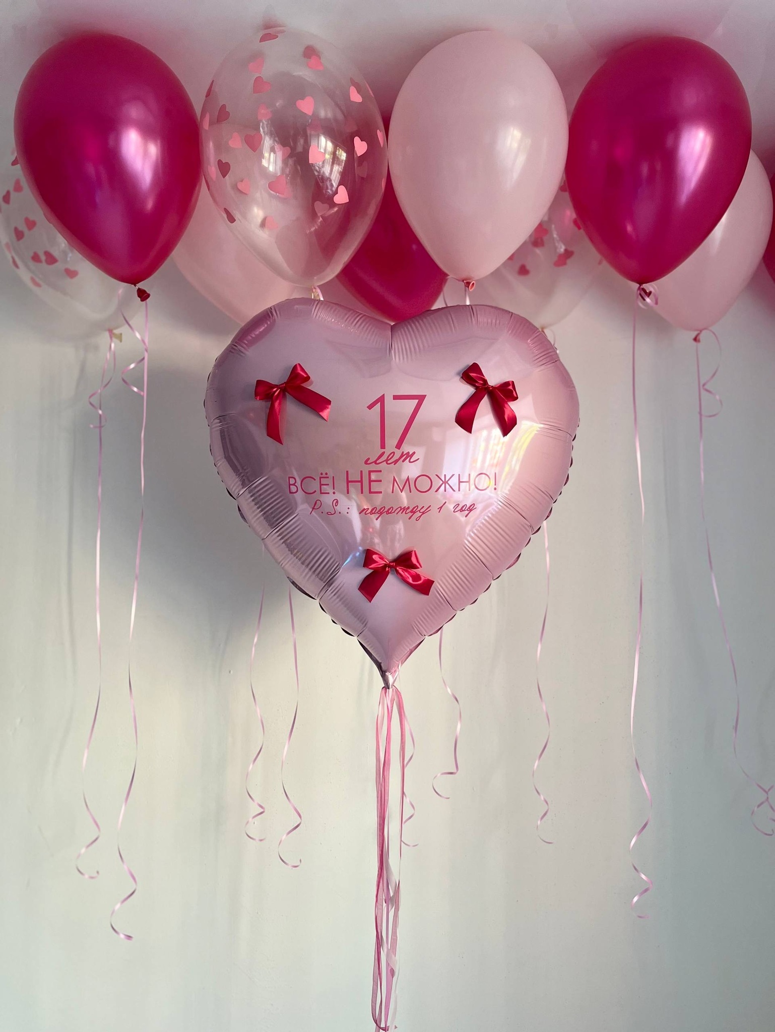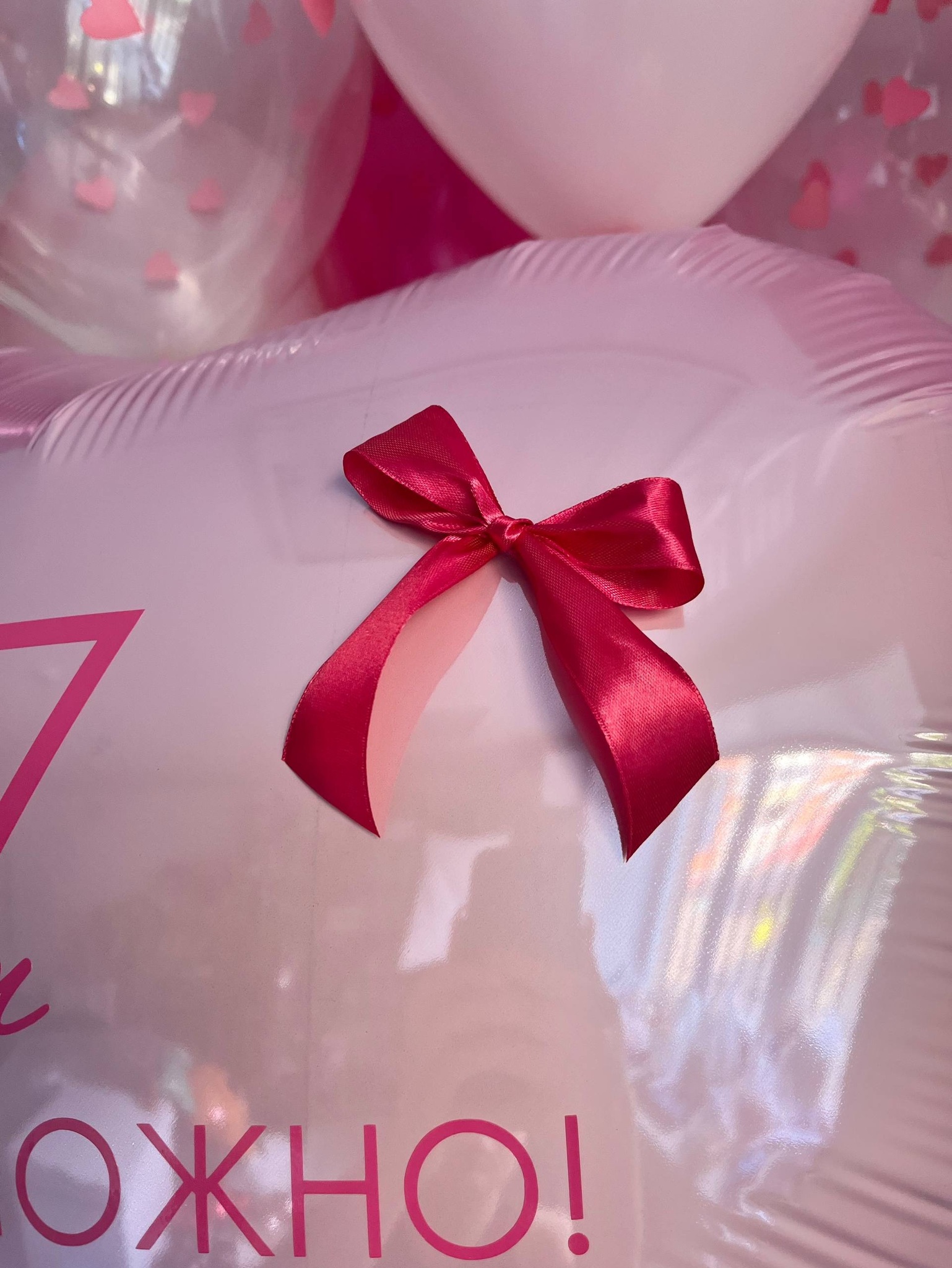 Воздушные шары бантики фуксия/розовый сердца №3409