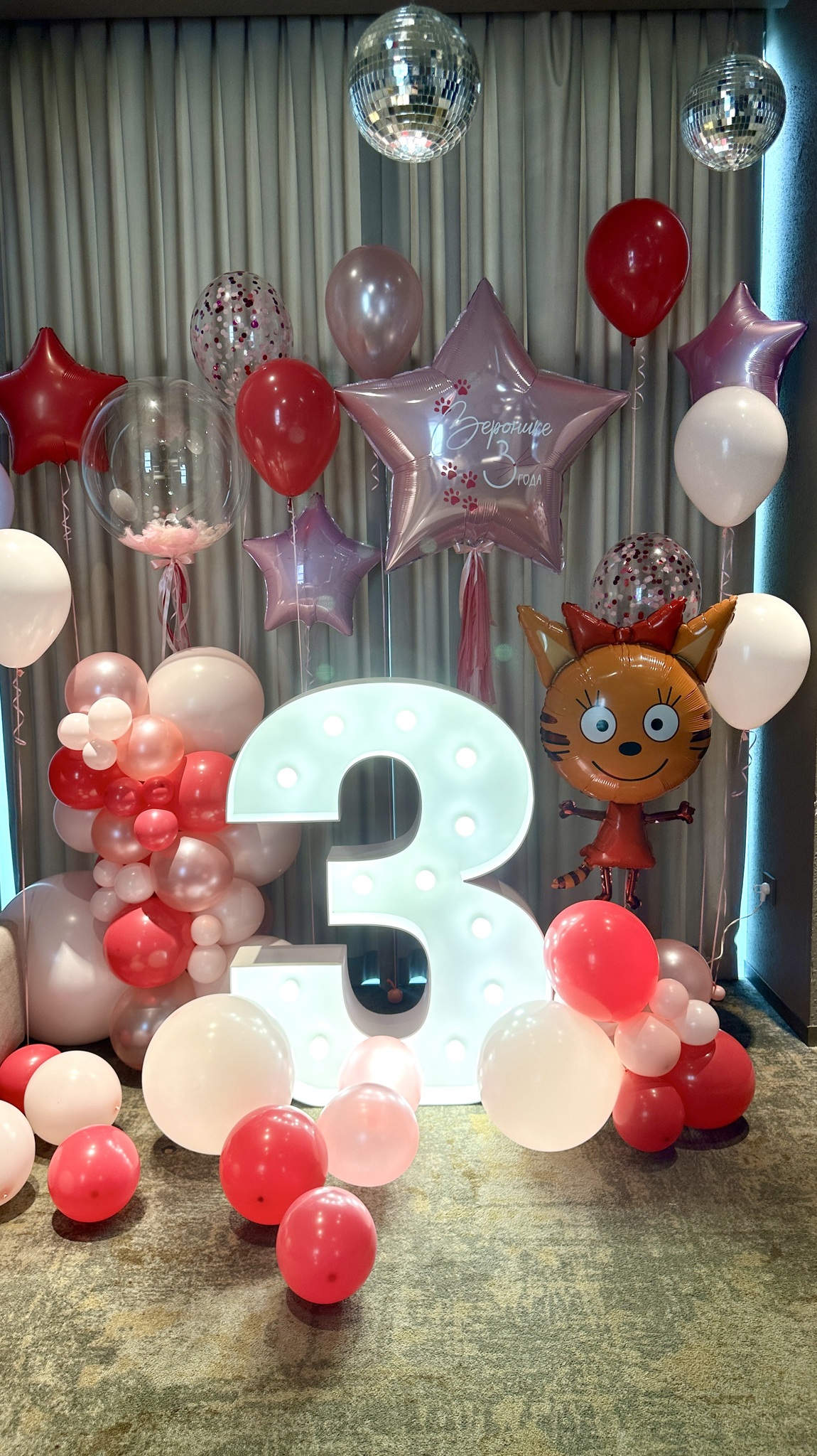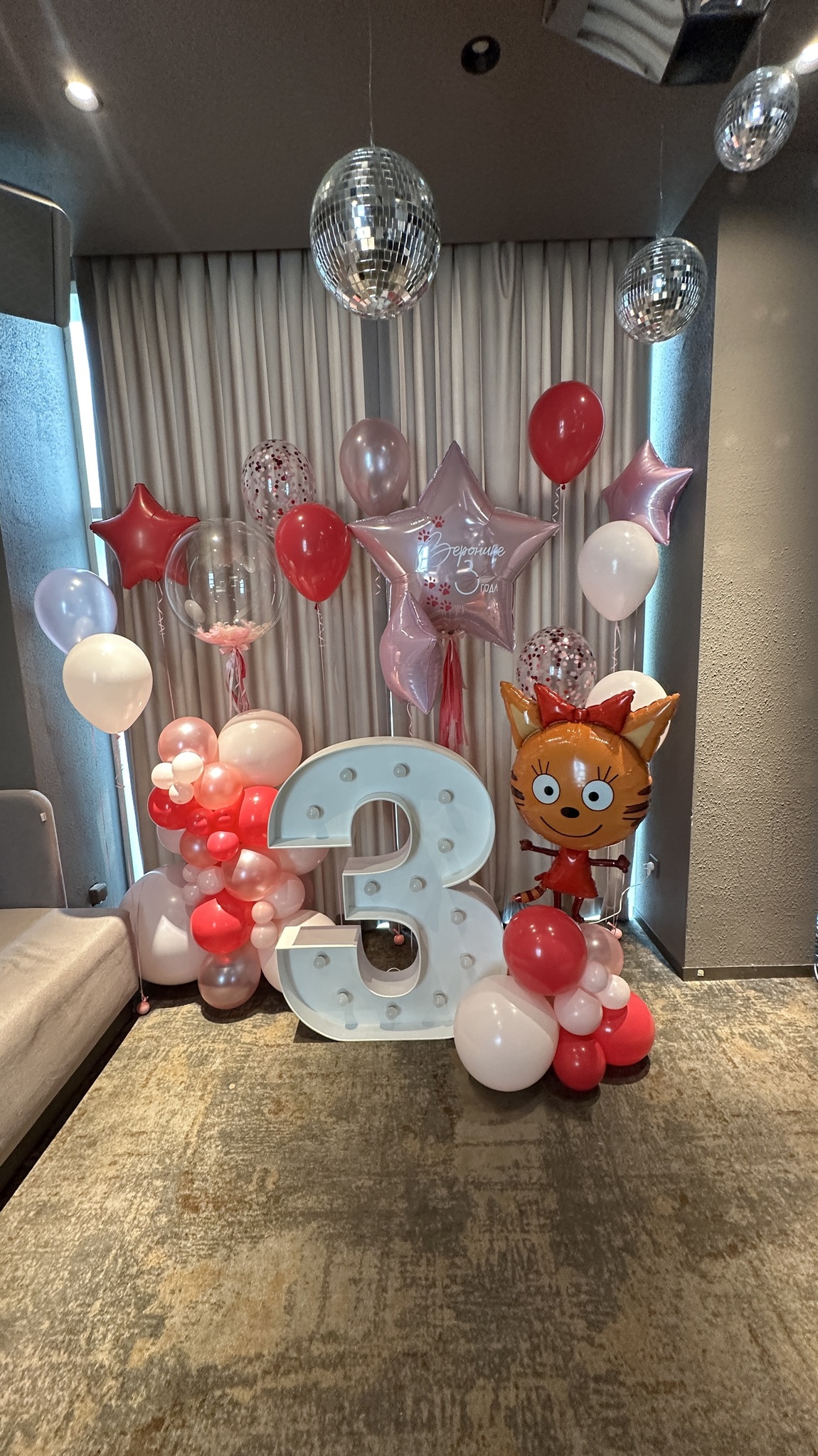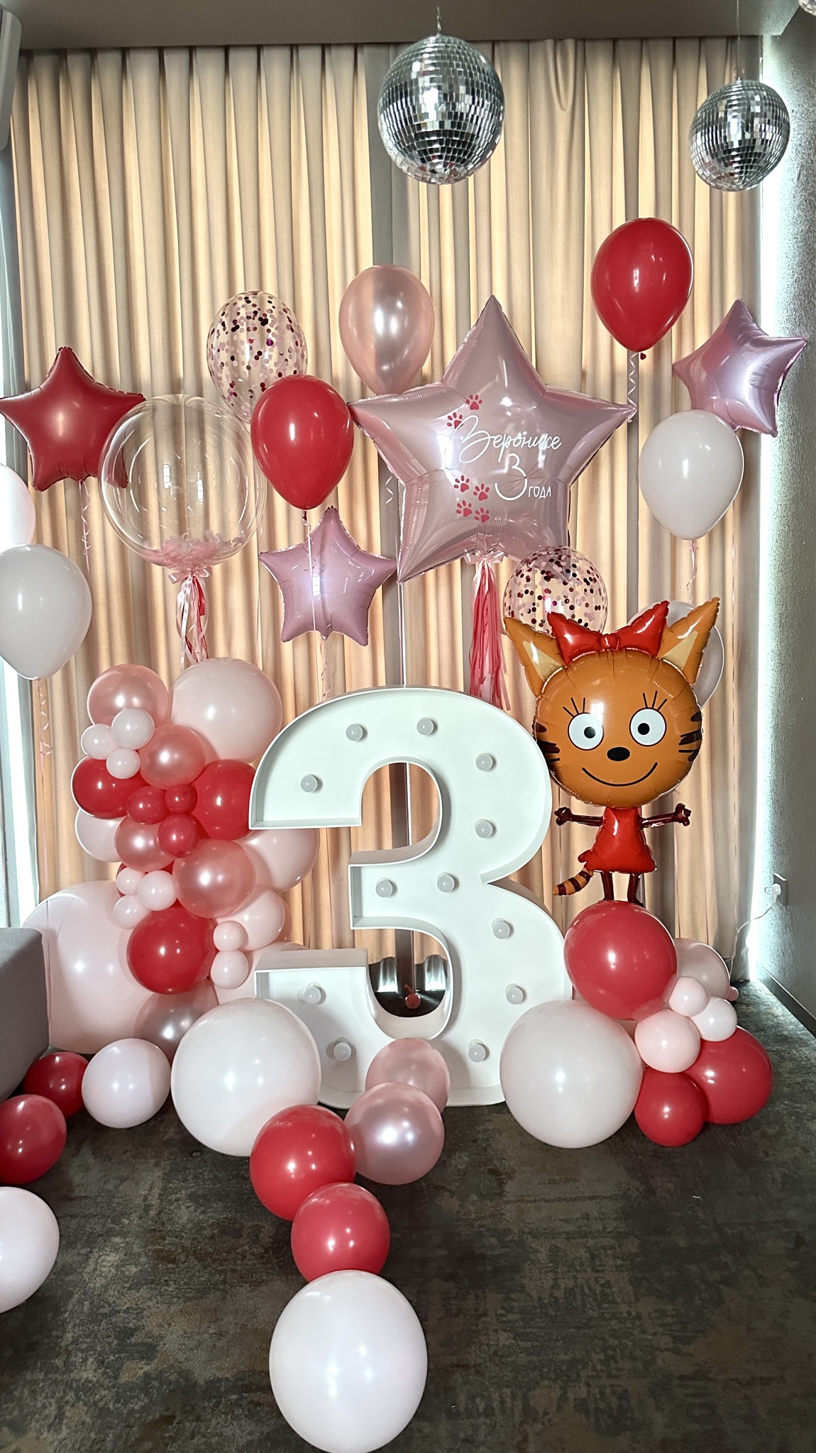 Воздушные шары Фотозона Три кота Карамелька световая цифра 3 №3418