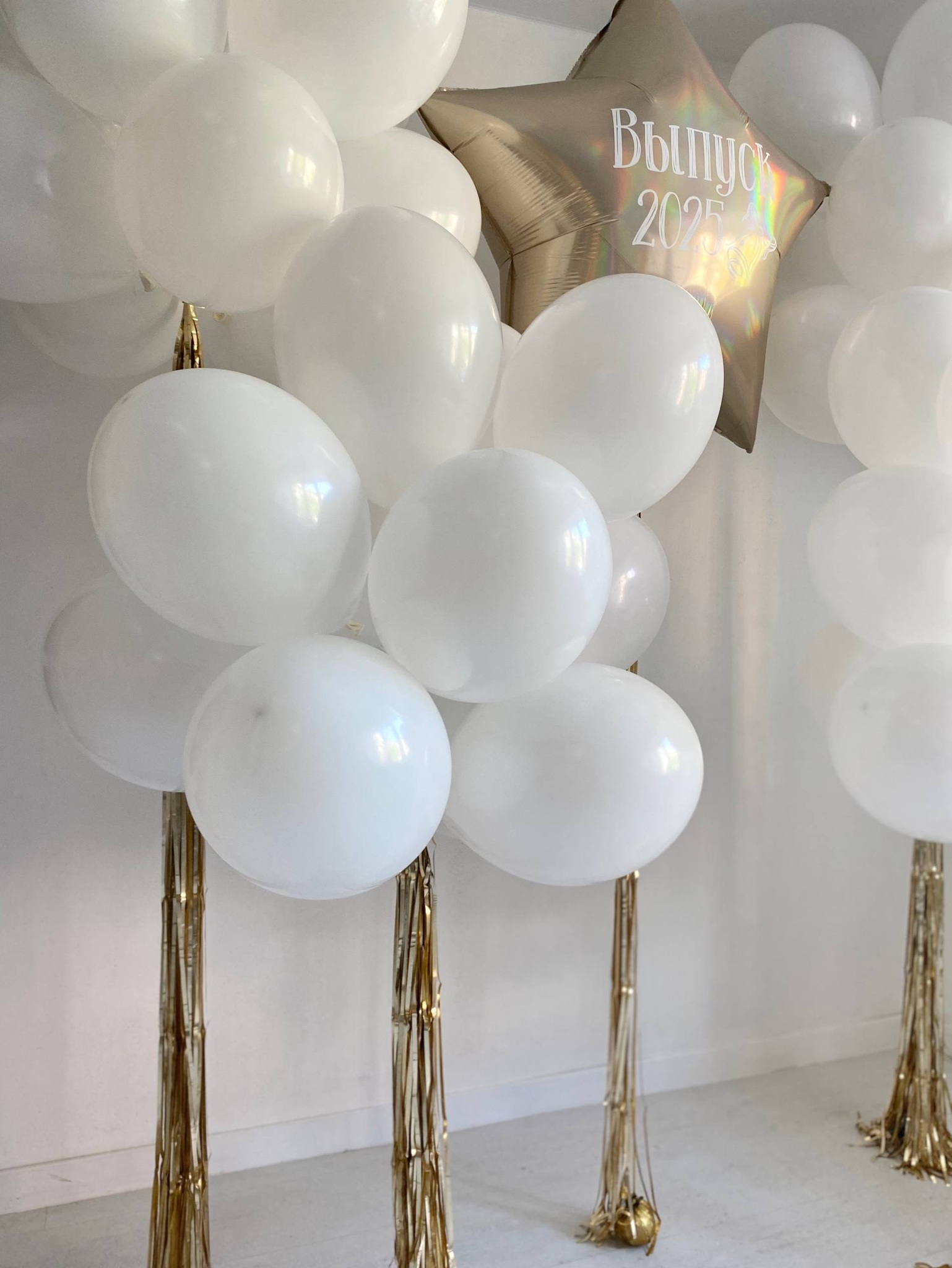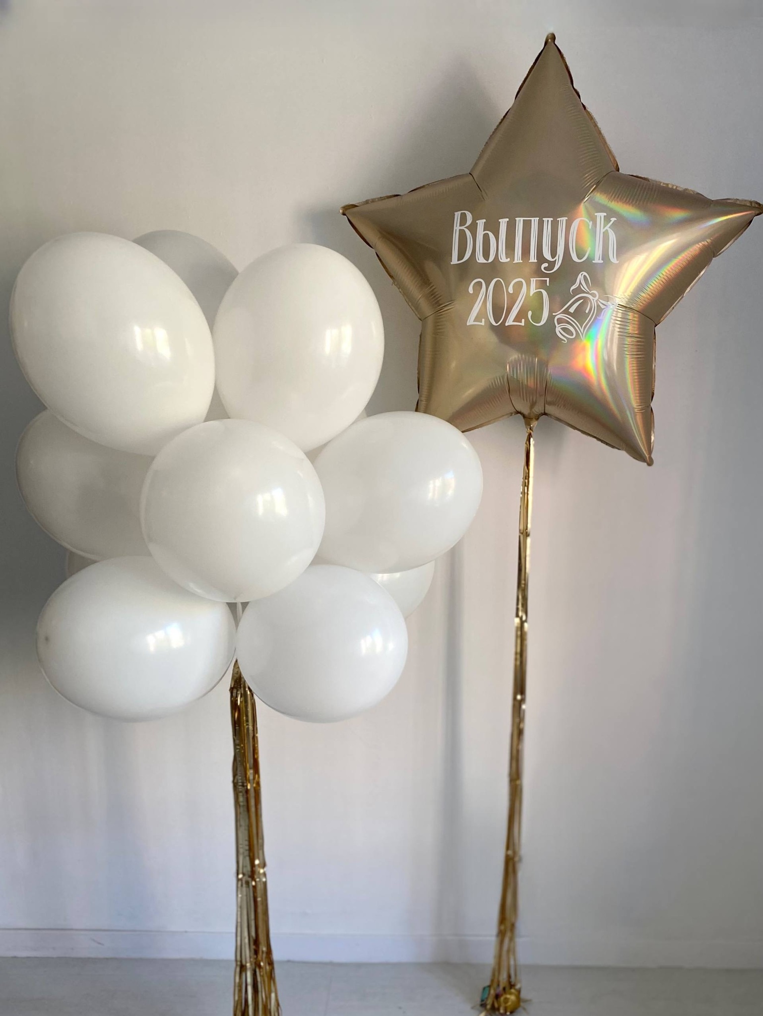 Воздушные шары на выпускной золото/белый звезда галография №3420