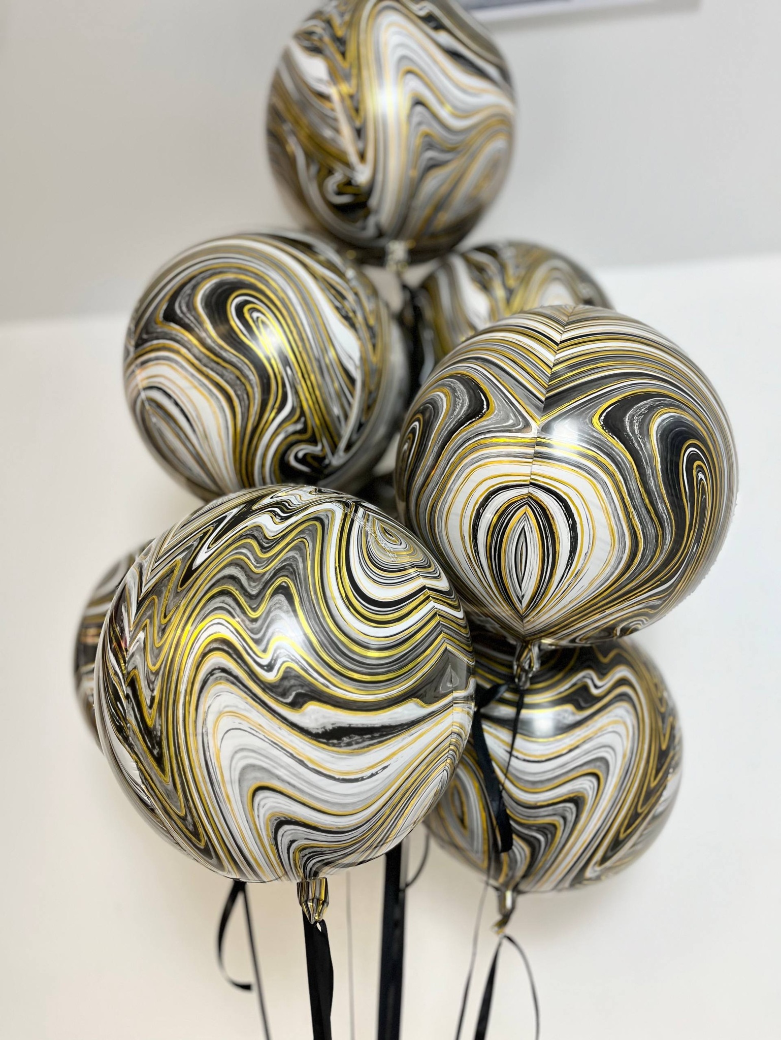 Воздушные шары сфера Агат черный/белый/золото №3429